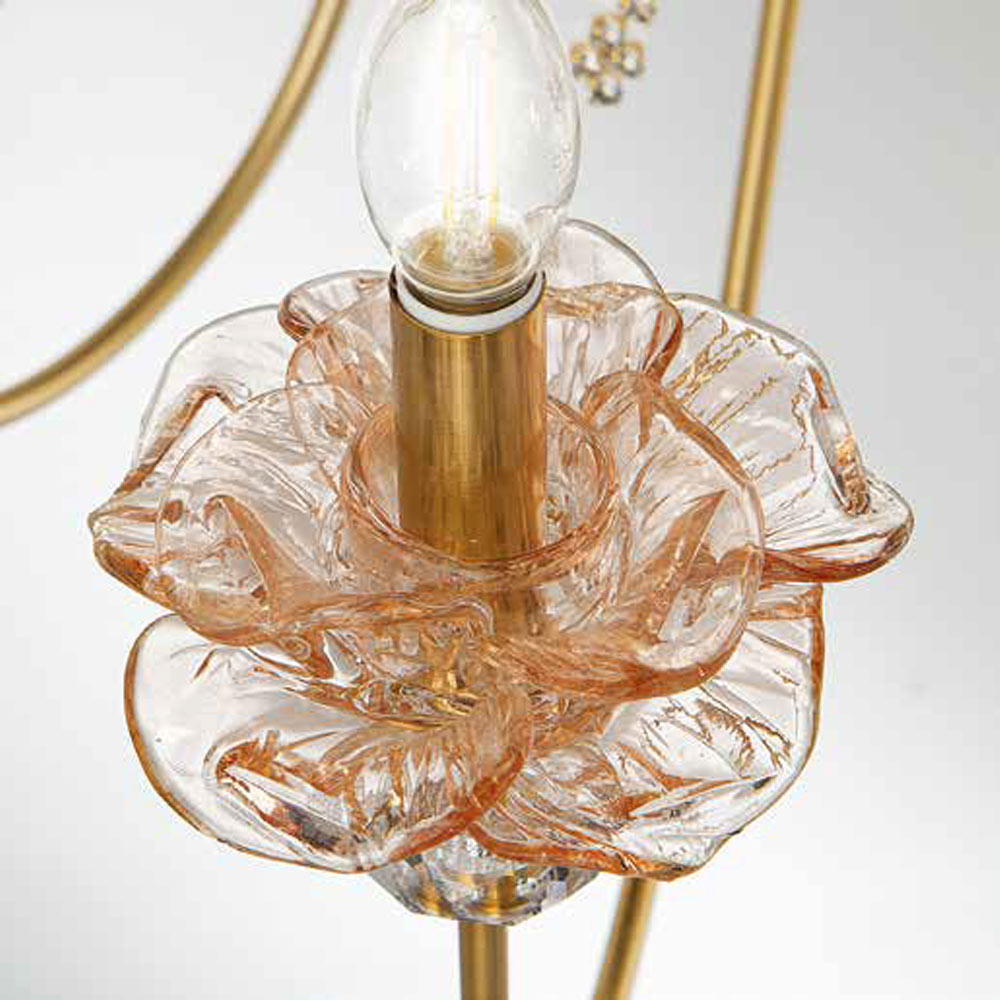 What makes it unique and majestic are the buds made of handcrafted glass of the highest quality and the jewel details in crystal that recall the drops of dew, also handmade, which give life to a classic style of the past, whose charm becomes the protagonist in the destination space.