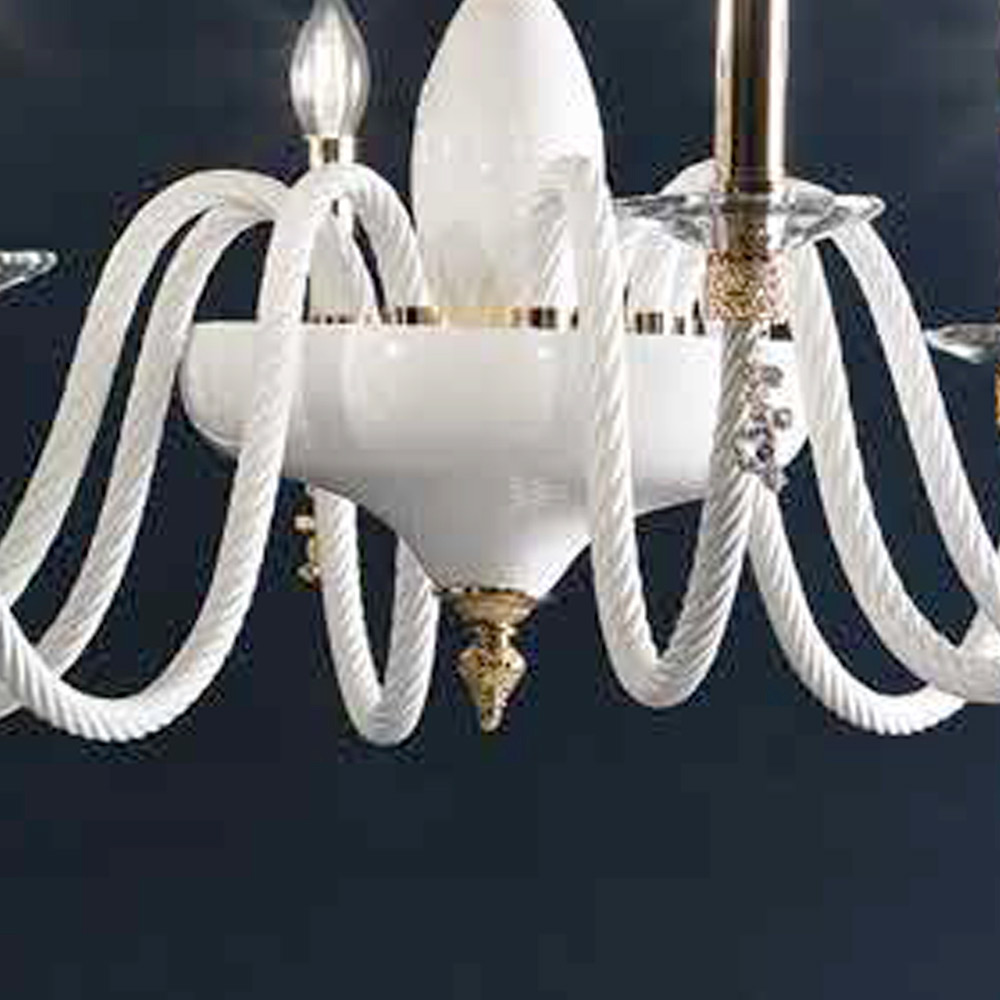 - Body in white glass - details in transparent glass - shiny gold metal;