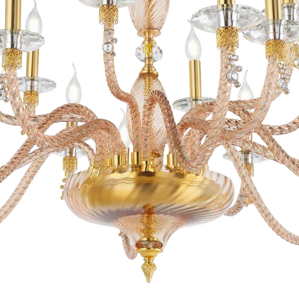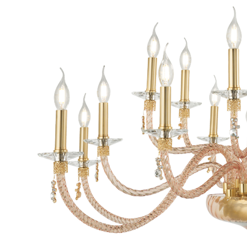 24 lights chandelier in blown glass and jewel details, Italian luxury.
