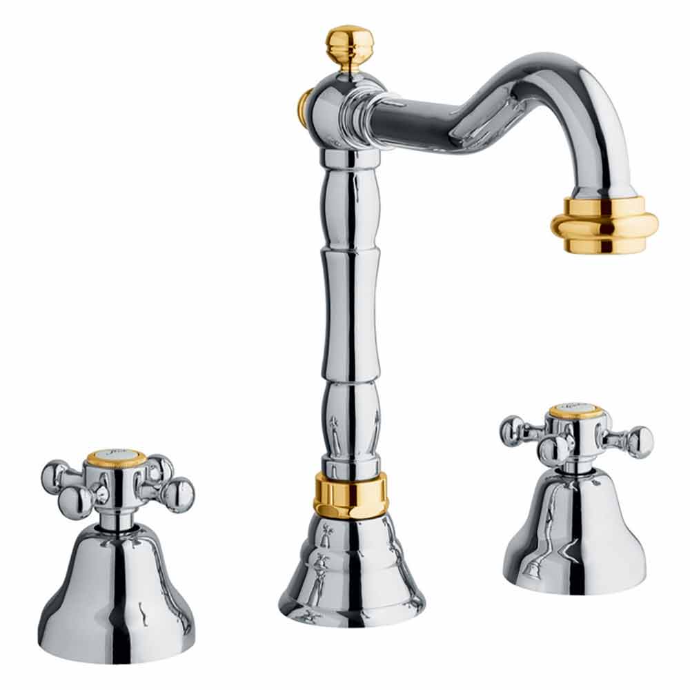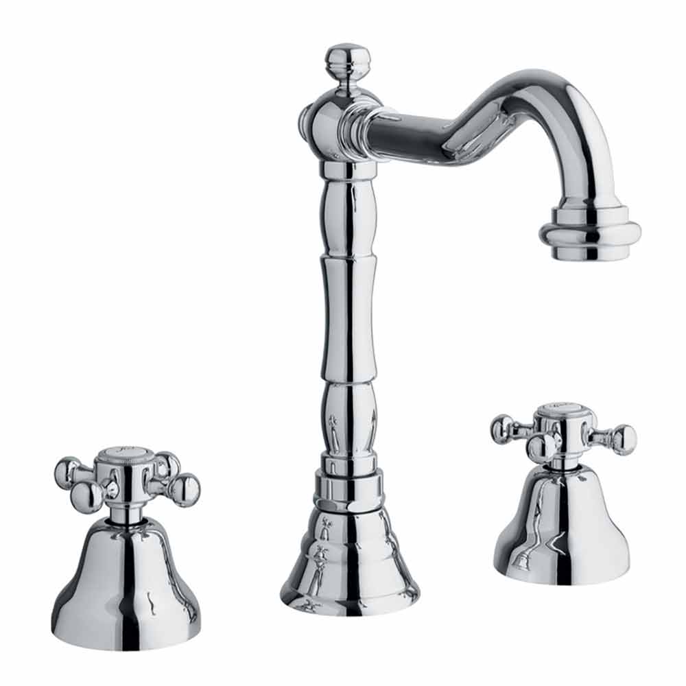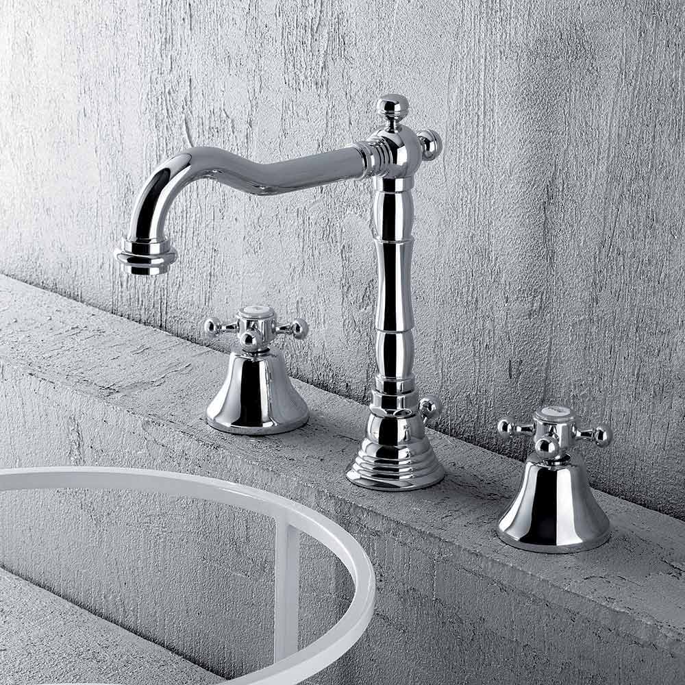 3-hole mixer for classic design bathroom sink in chrome brass Made in Italy.