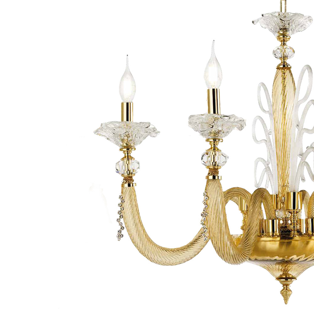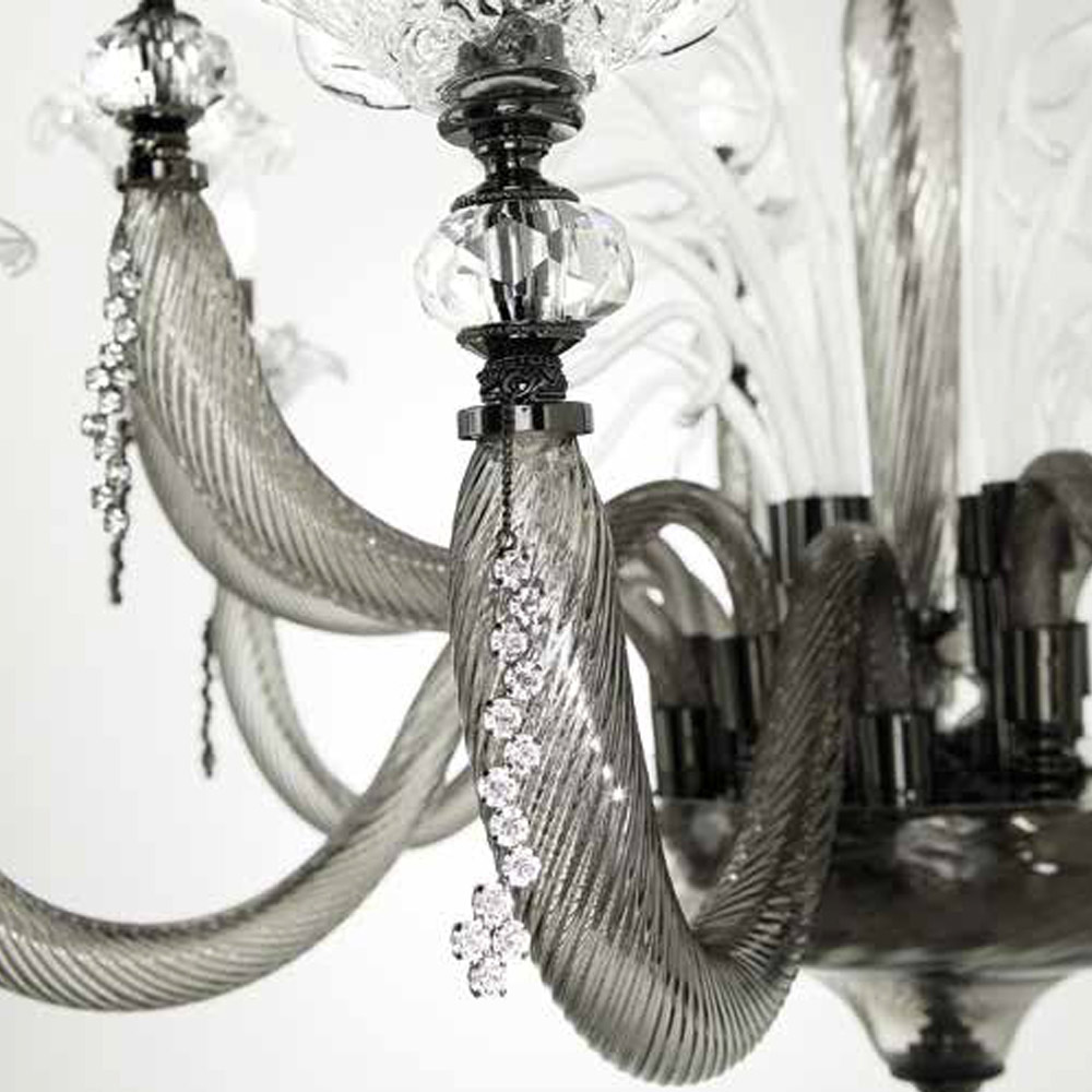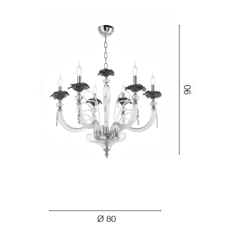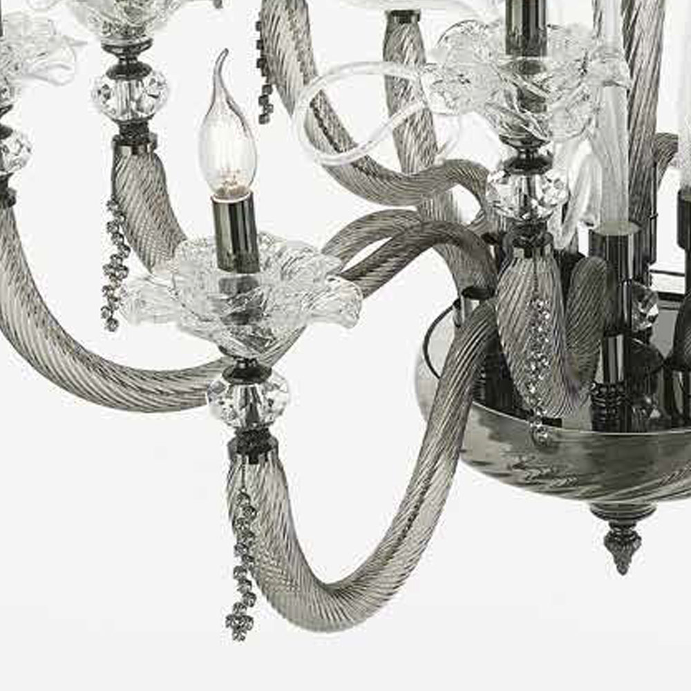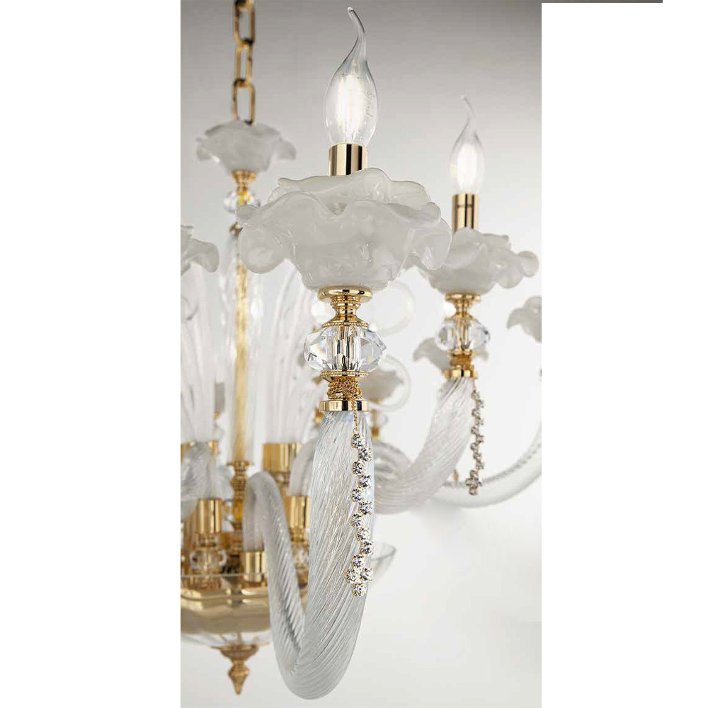 The 6-light chandelier is a luxury lighting accessory entirely made in Italy in the finest hand-blown glass of the highest quality with floral details in glass.