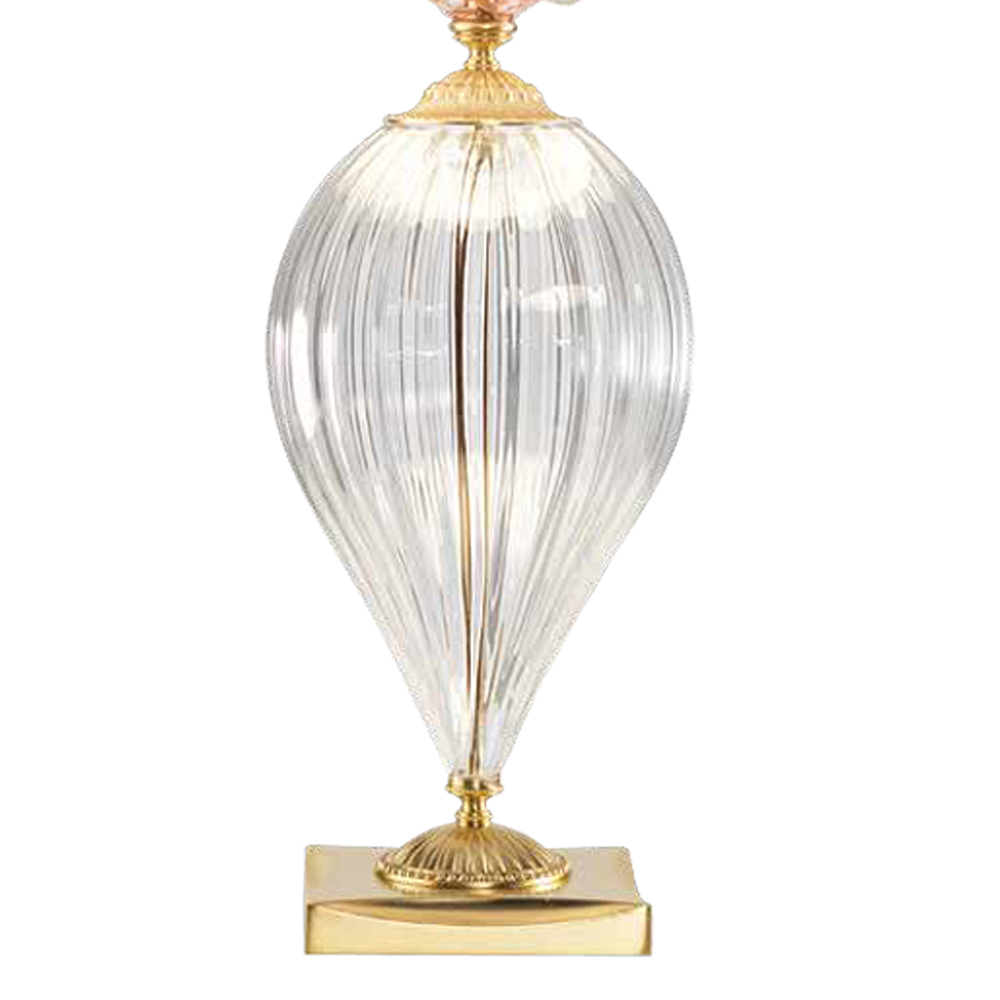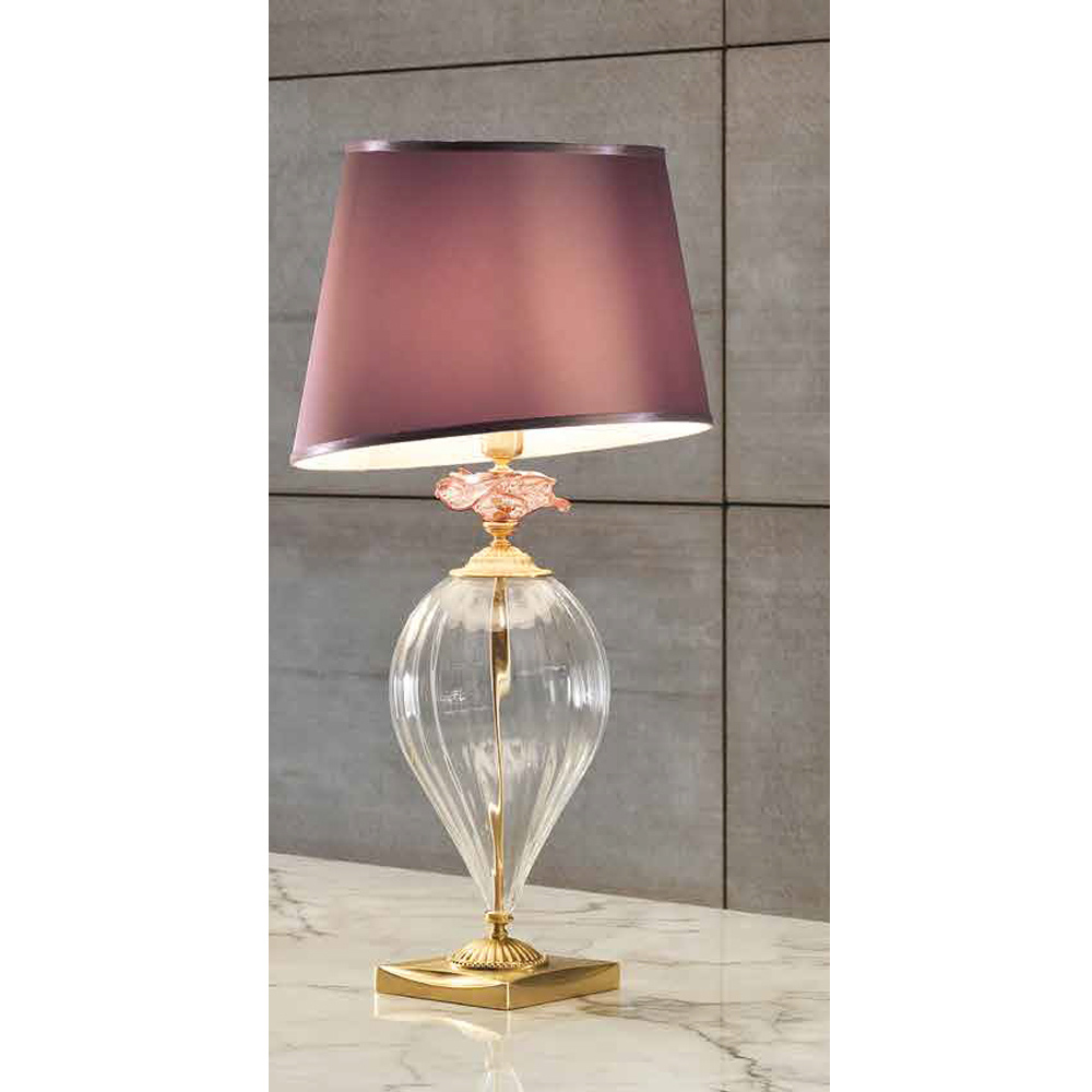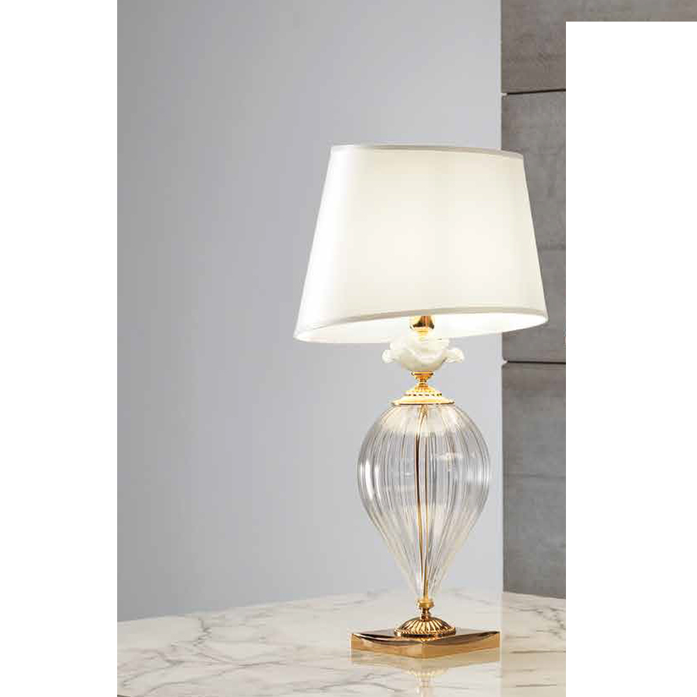 Table lamp in handcrafted glass with crystal decoration, luxury made in Italy.