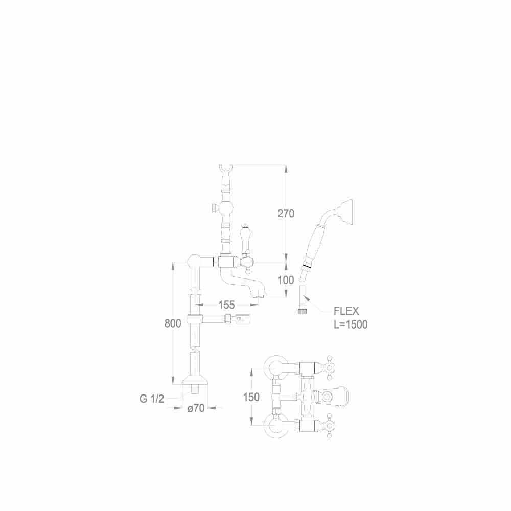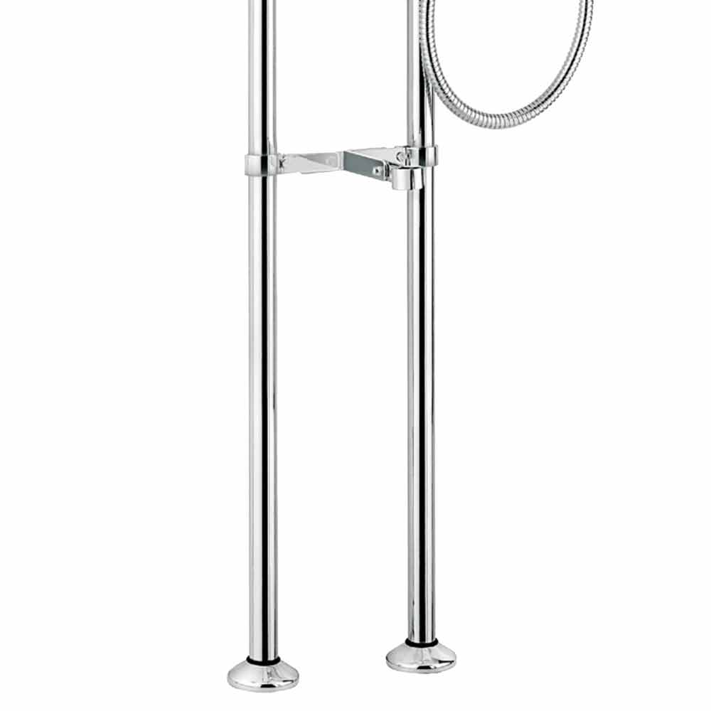 Exposed bath mixer on floor columns with diverter and duplex hand shower Made in Italy.