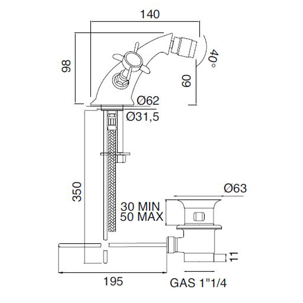 one-hole bidet faucetĀ with drainĀ ĆØ entirely