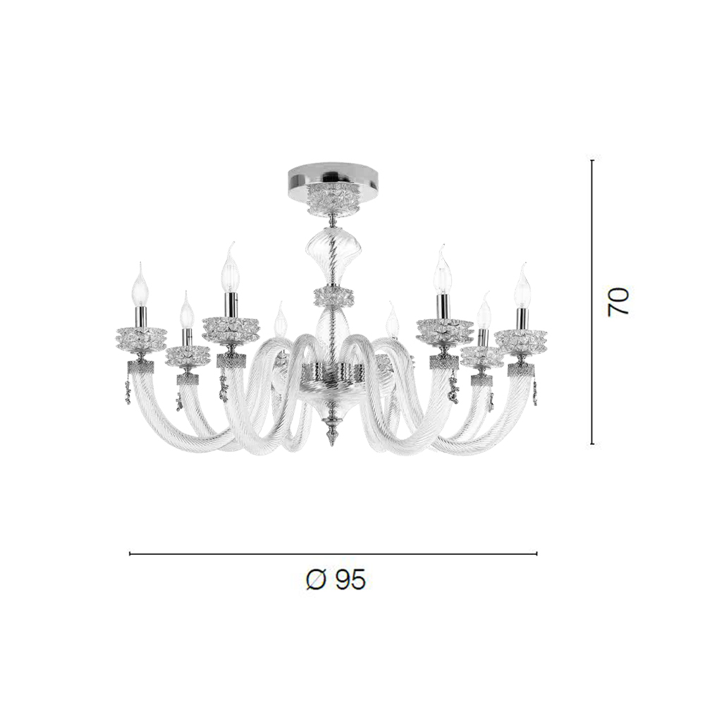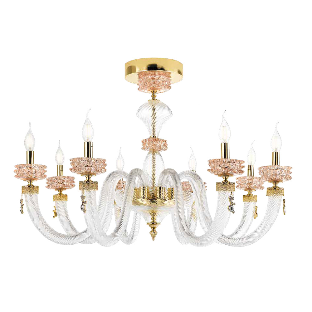 Classic Ceiling Lamp 8 Lights in Italian Luxury Handcrafted Glass - Saline