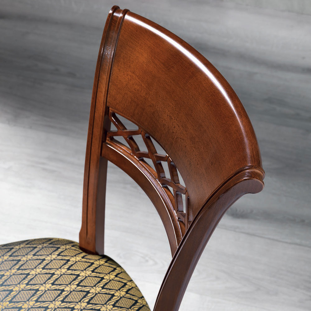 Living room chair in wood and classic design fabric made in Italy.