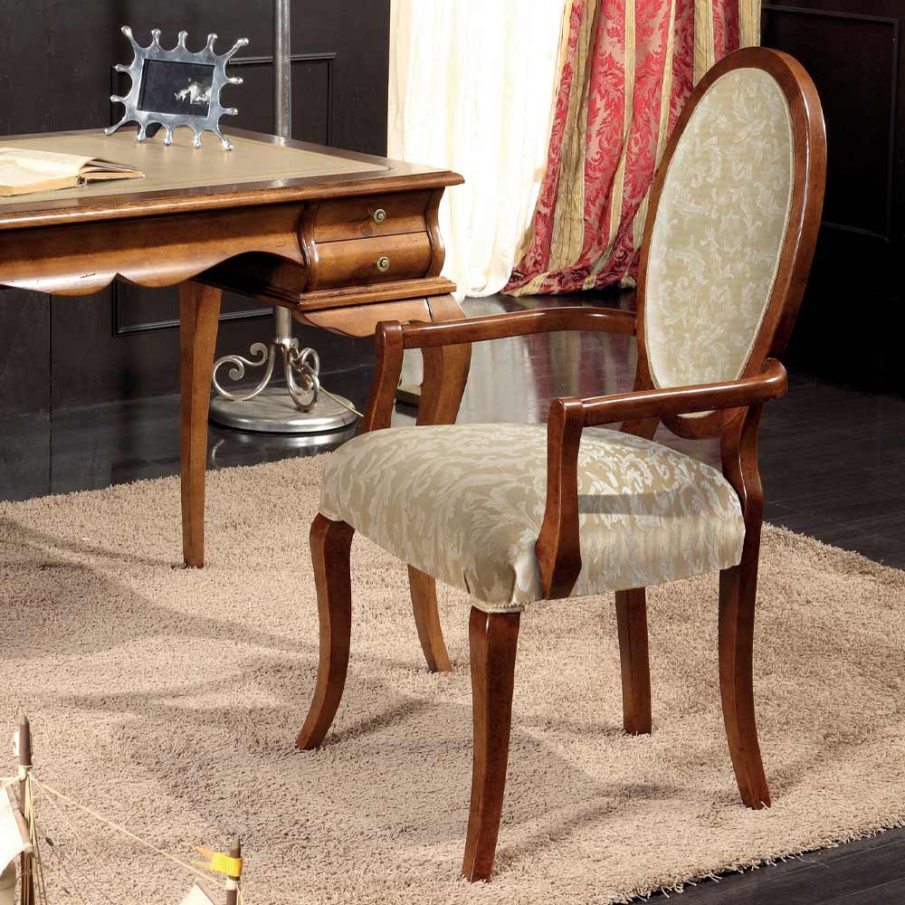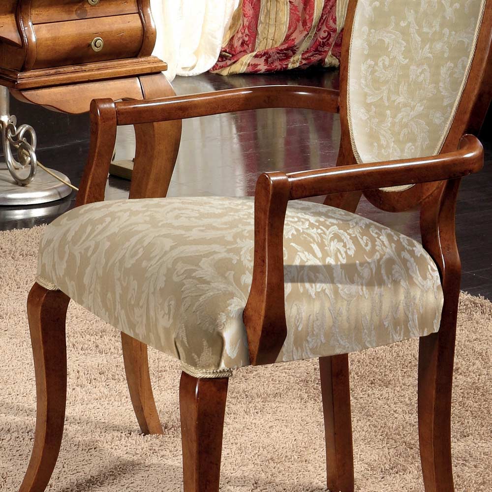 Classic style dining room chair made of walnut finish wood and upholstered fabric available in the version with or without armrests.