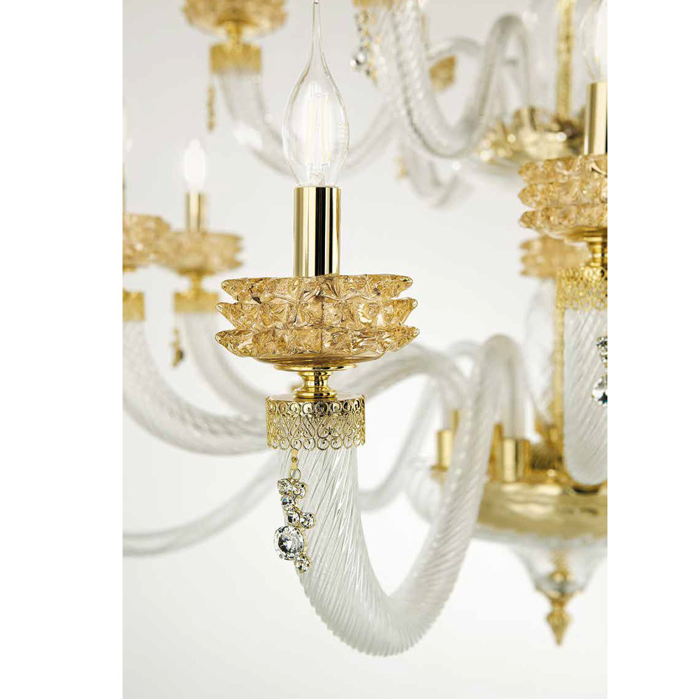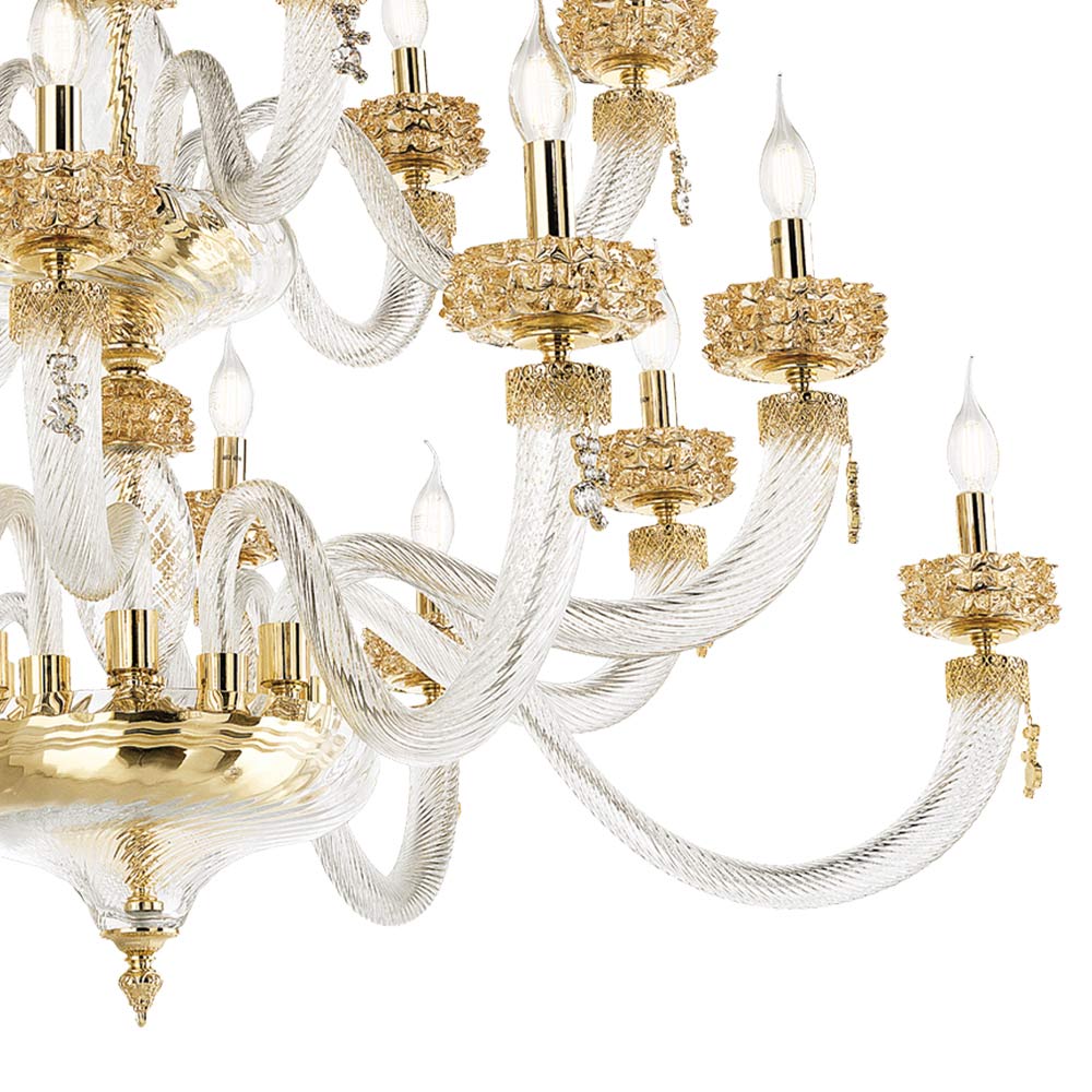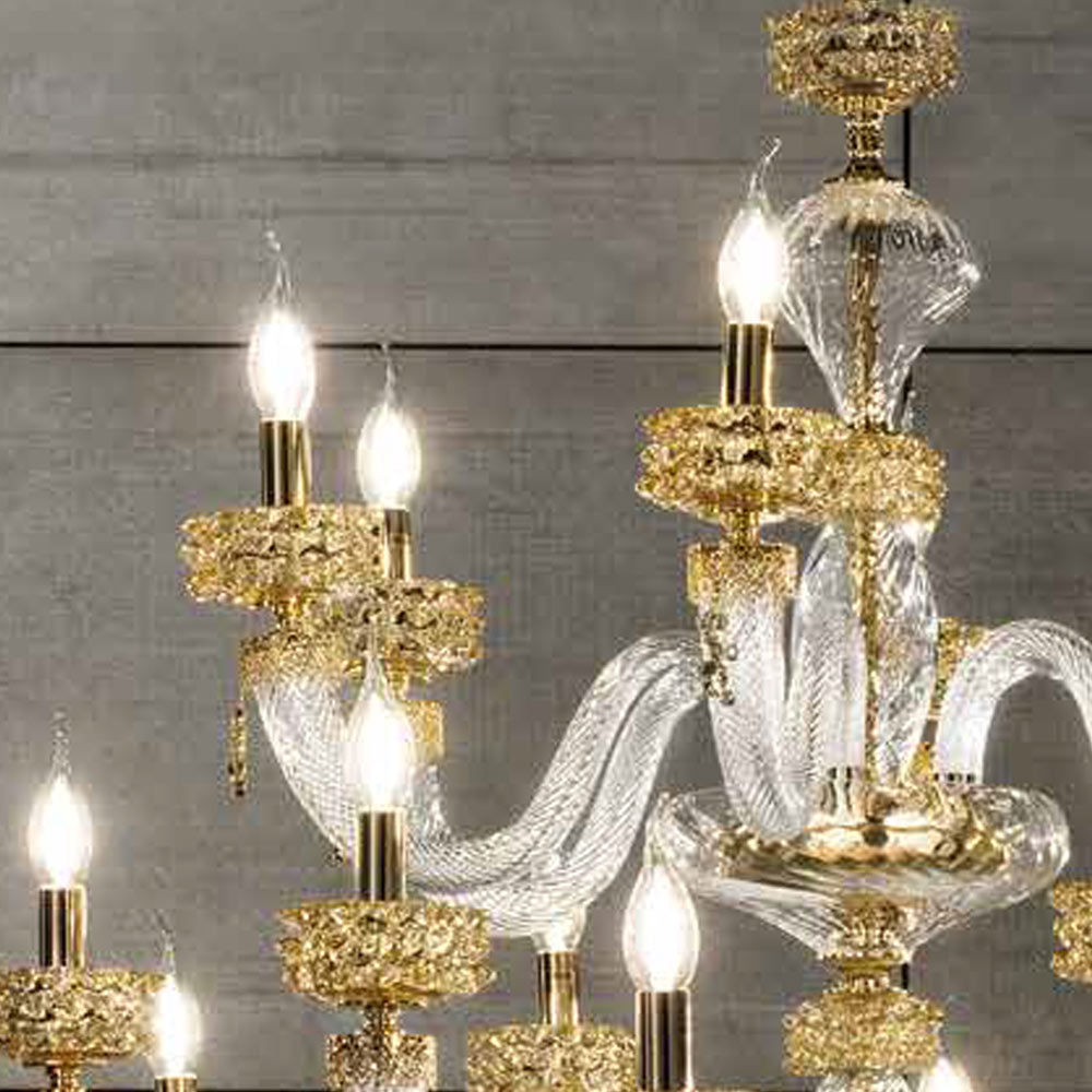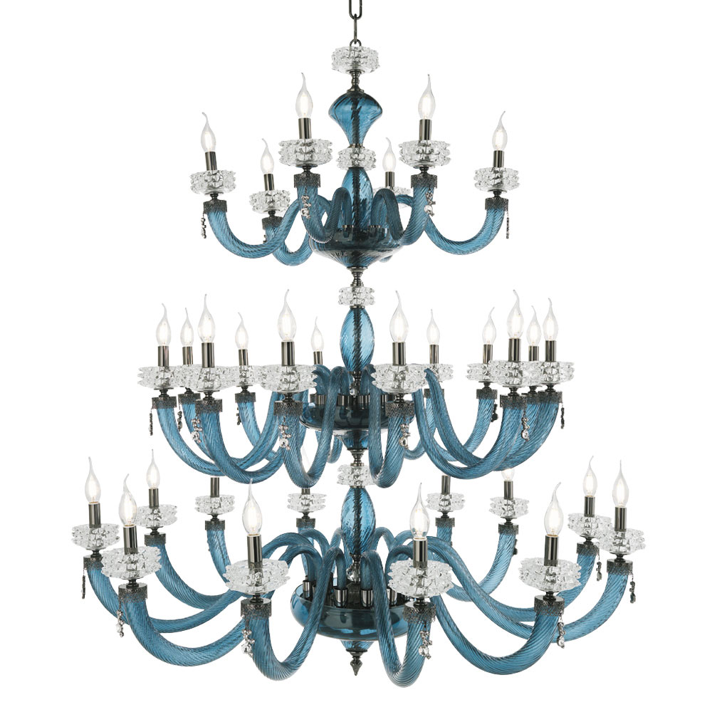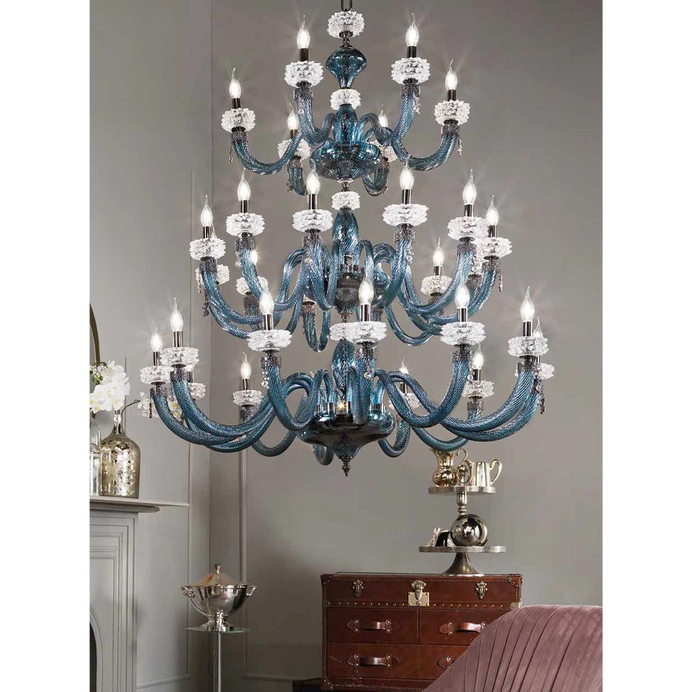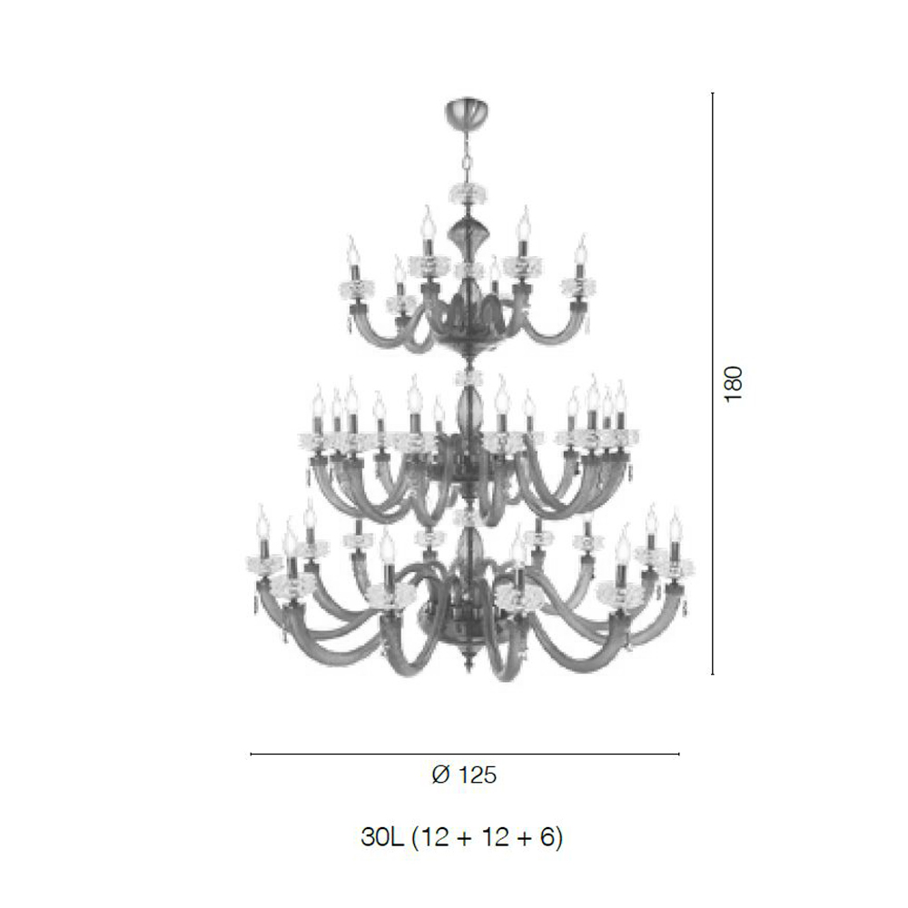 30 lights chandelier in handcrafted glass and metal, Italian luxury design.