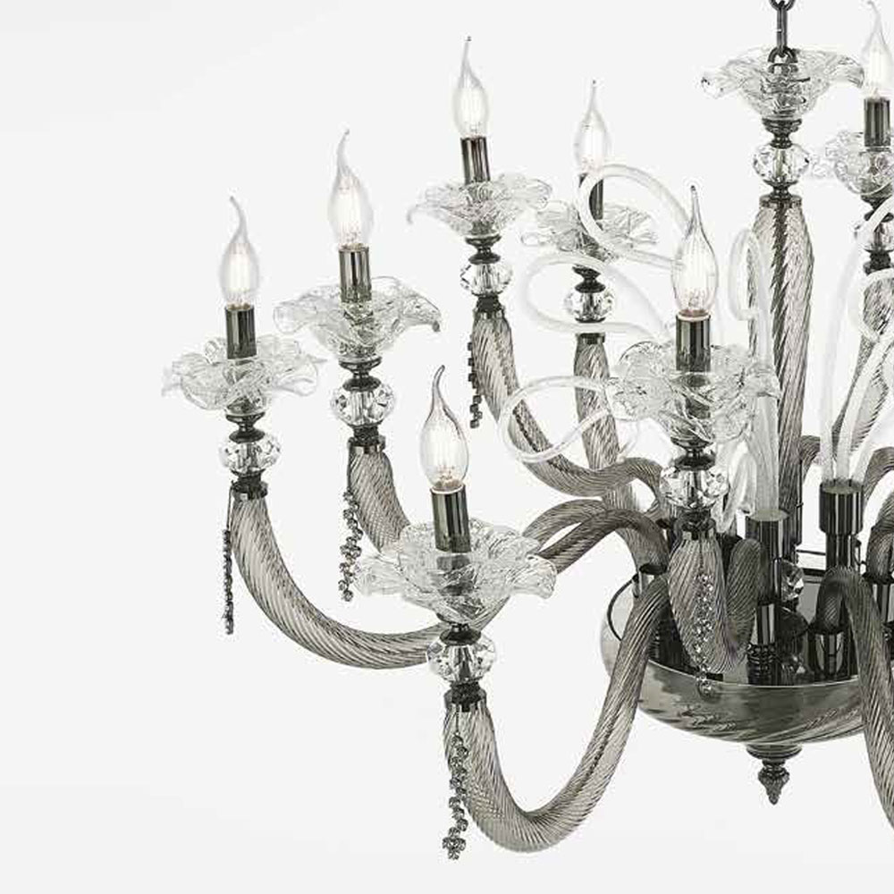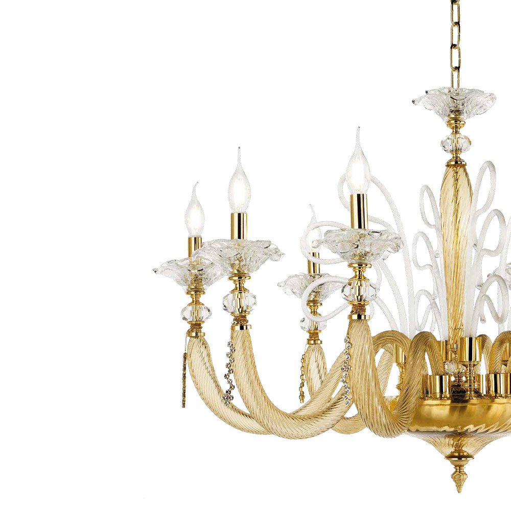 The 8-light chandelier is a luxury lighting accessory entirely made in Italy in the finest hand-blown glass of the highest quality with floral details in glass.