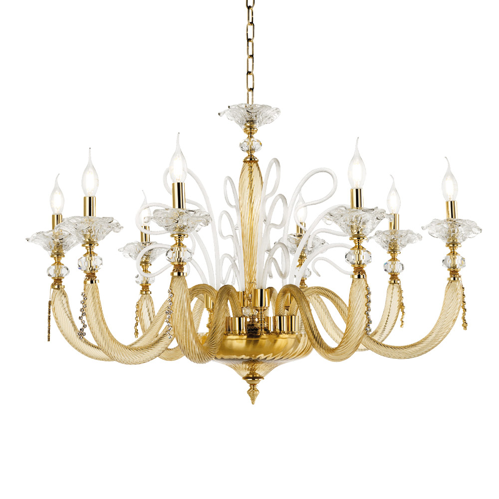 Classic Chandelier 8 Lights Blown Glass Floral Details - Bluminda