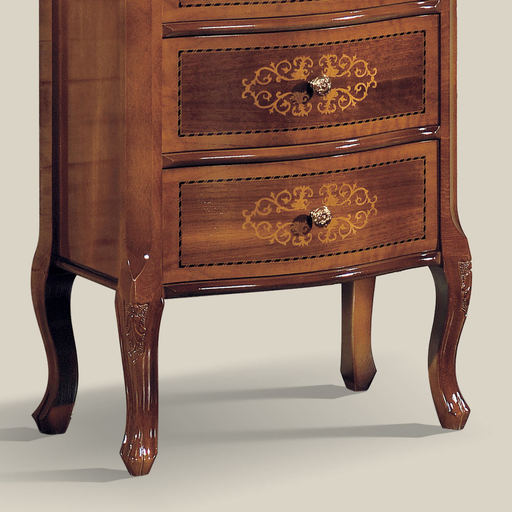 Ideal chest of drawers to furnish the bedroom with a touch of classic and timeless style made of precious polished walnut wood with elegant gold inlays. This practical accessory is available in the version with 4 or 6 drawers. Unique and refined, it is completely made in Italy and handcrafted by skilled master craftsmen , finished with wisdom and taste for elegance. The production is carried out using fine materials , and performing the work by hand with the utmost care and professionalism that distinguishes Made in Italy products.