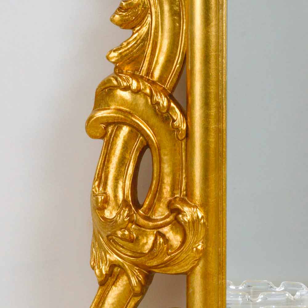 The Guerin mirror is characterized by a craftsmanship carried out using quality materials and using the experience of skilled Italian artisans. The frame is made of wood decorated with carvings. Antique gold leaf finish. Crystal mirror, 4mm thick. Made in Italy. To hang both horizontally and vertically.