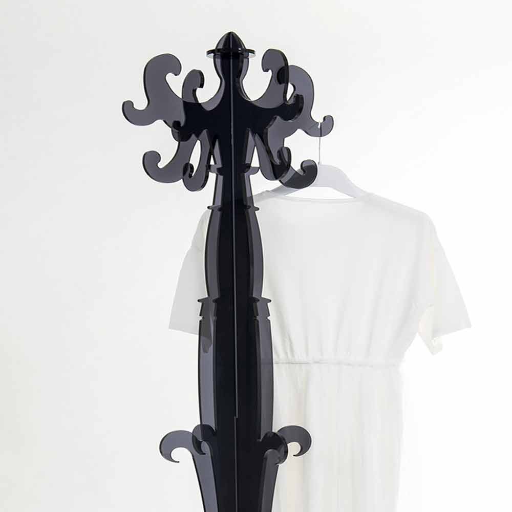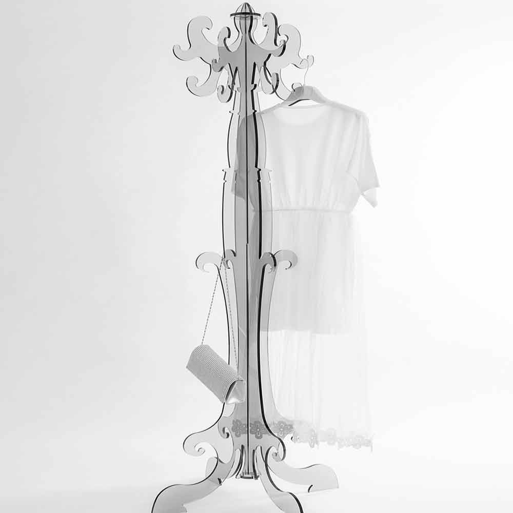 A coat hanger with enchanting shapes recalling the design of the early XX century. Made in plexiglass 100% from virgin polymer, entirely laser-cut, Giave furnishes with sophisticated discretion.