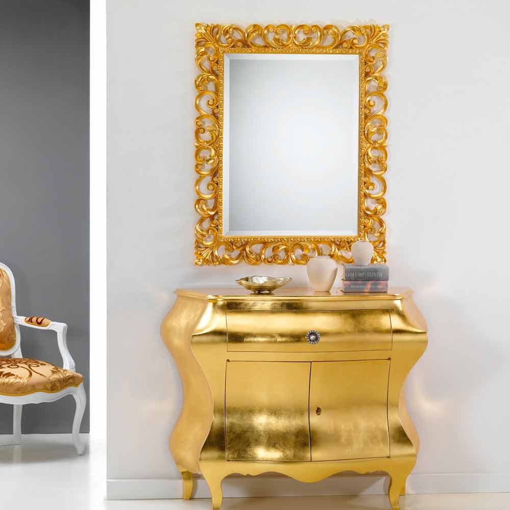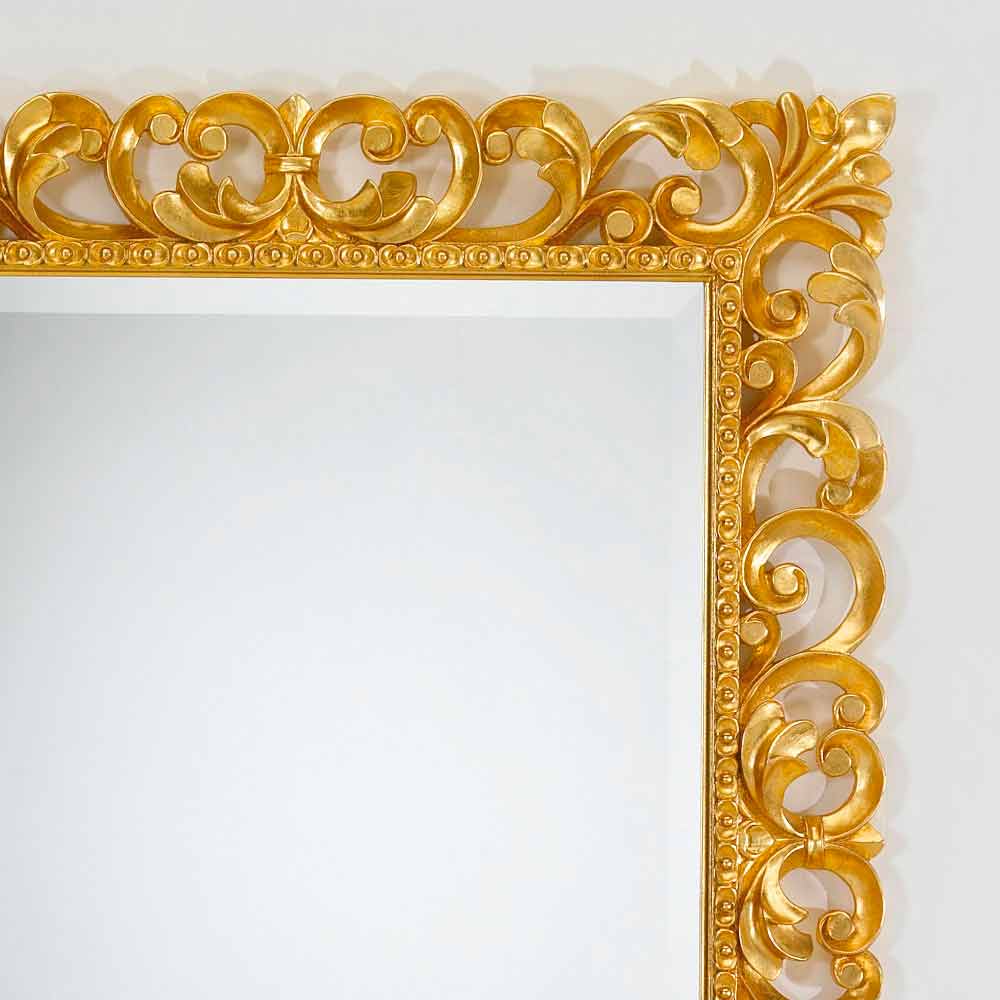 The Paris mirror is characterized by a craftsmanship carried out using quality materials and using the experience of skilled Italian artisans. The frame is made of wood decorated with carvings. Gold leaf finish. 4mm thick beveled crystal mirror. Made in Italy. To hang both vertically and horizontally.