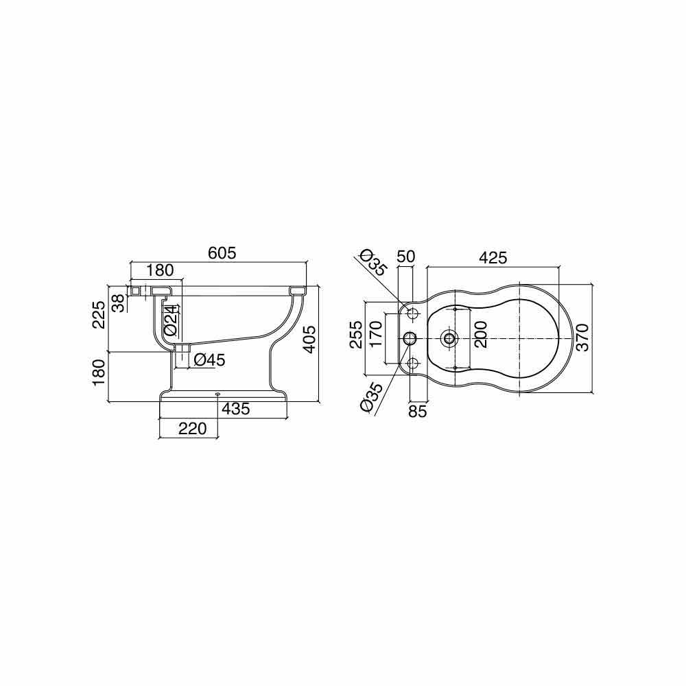 Classic design bidet in white Paulina ceramic, made in Italy.