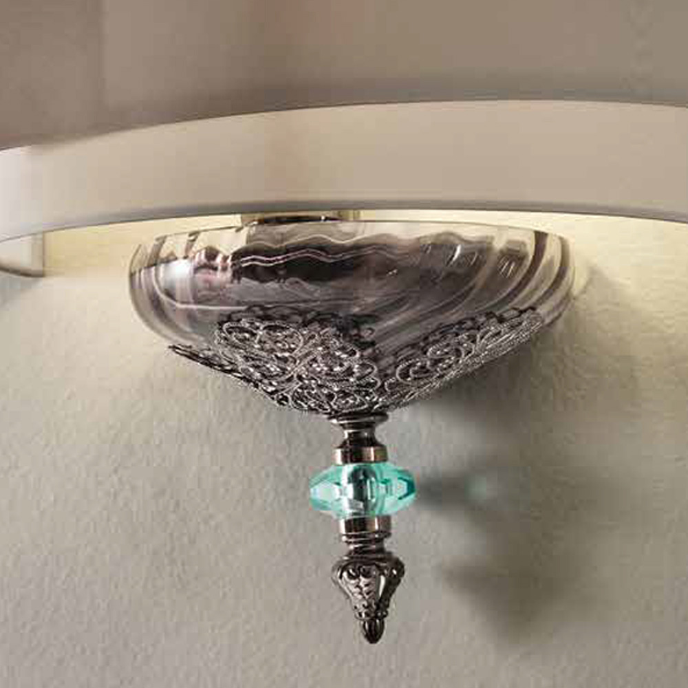 Luxury handcrafted glass wall light with lampshade, made in Italy.