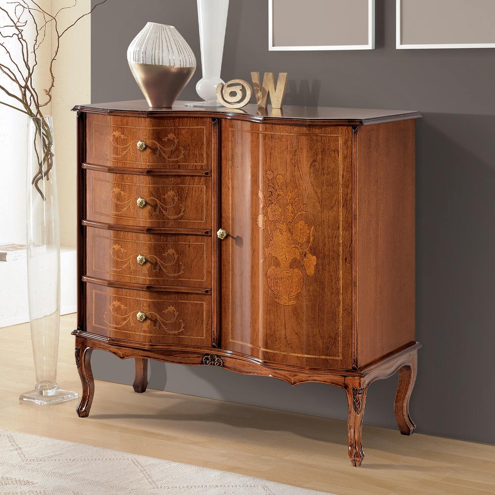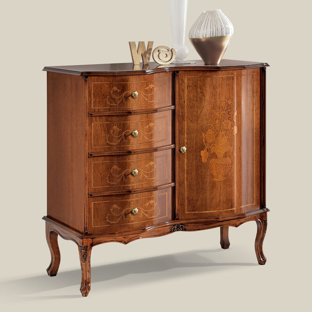 Classic style chest of drawers with door and 4 drawers Made in Italy.