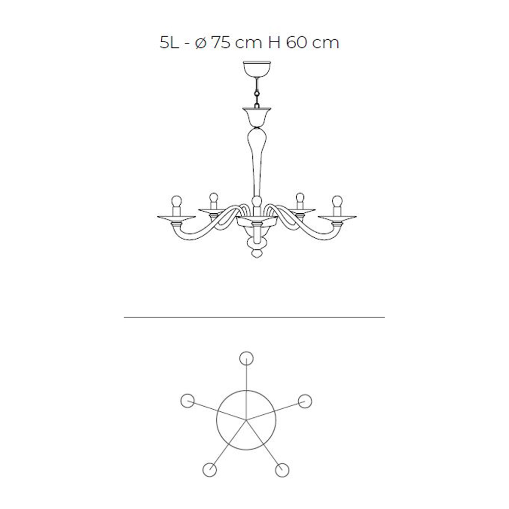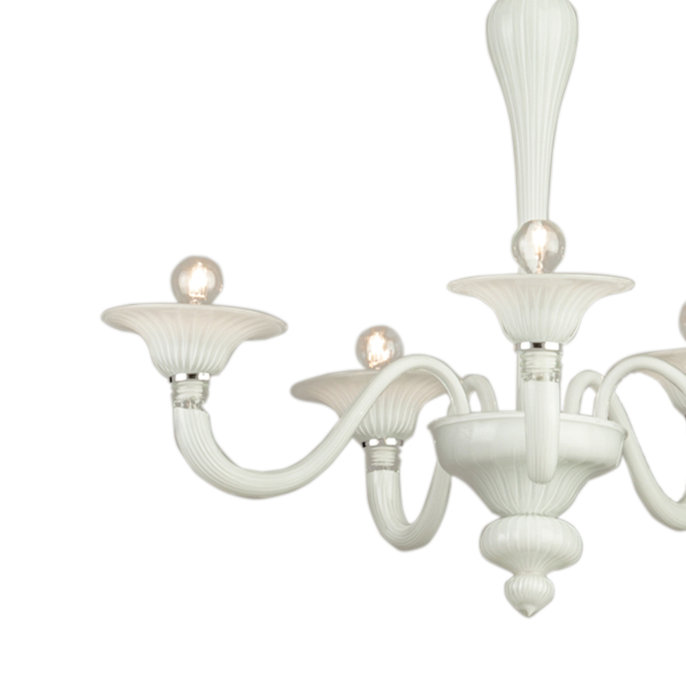 Classic style chandelier handcrafted in blown glass inside the furnaces of the Venetian hinterland, in Italy, through the use of ancient Murano glass processing techniques handed down over the years by the most expert glass masters.