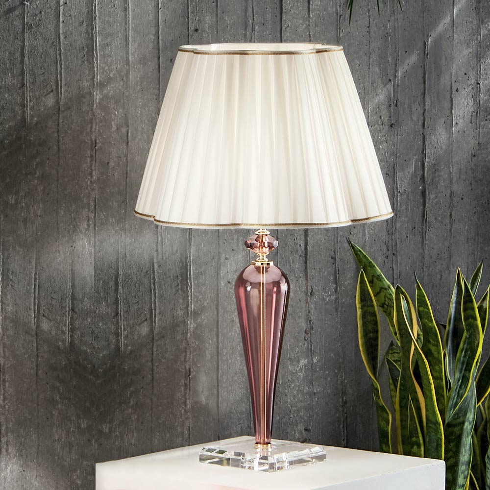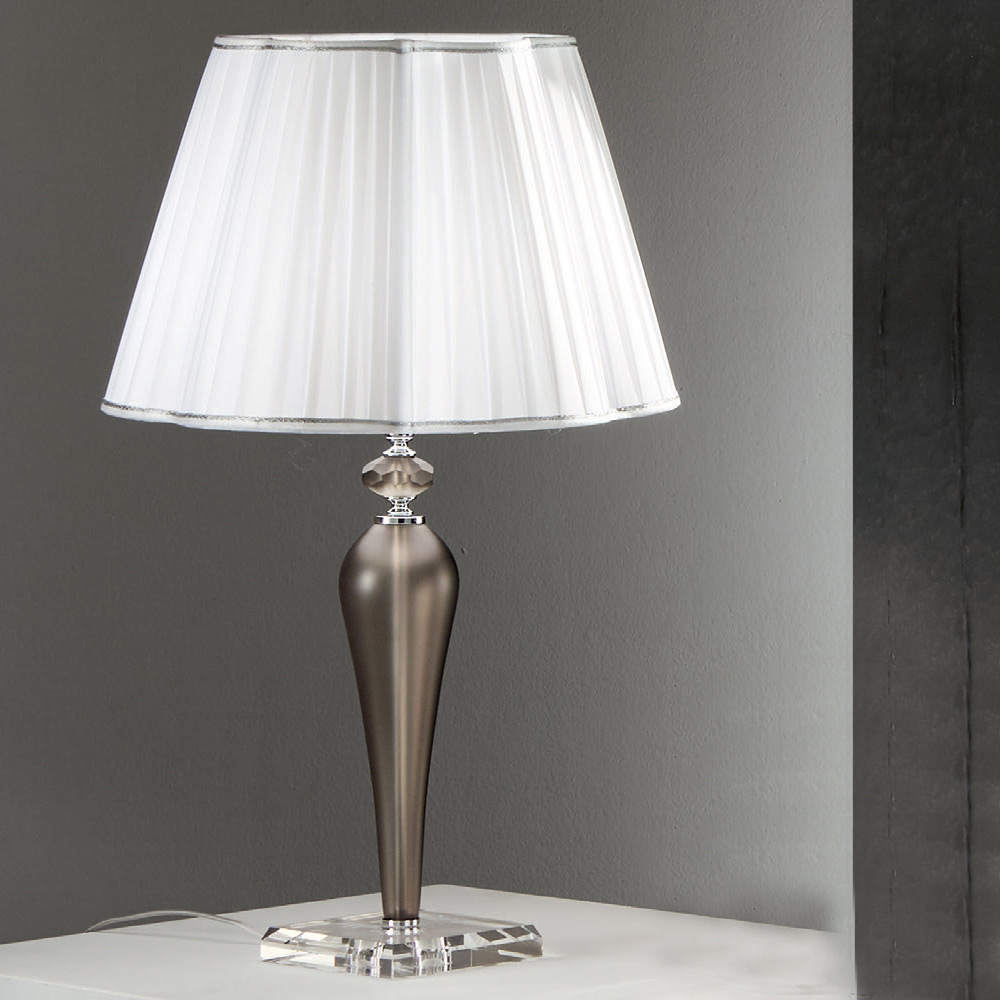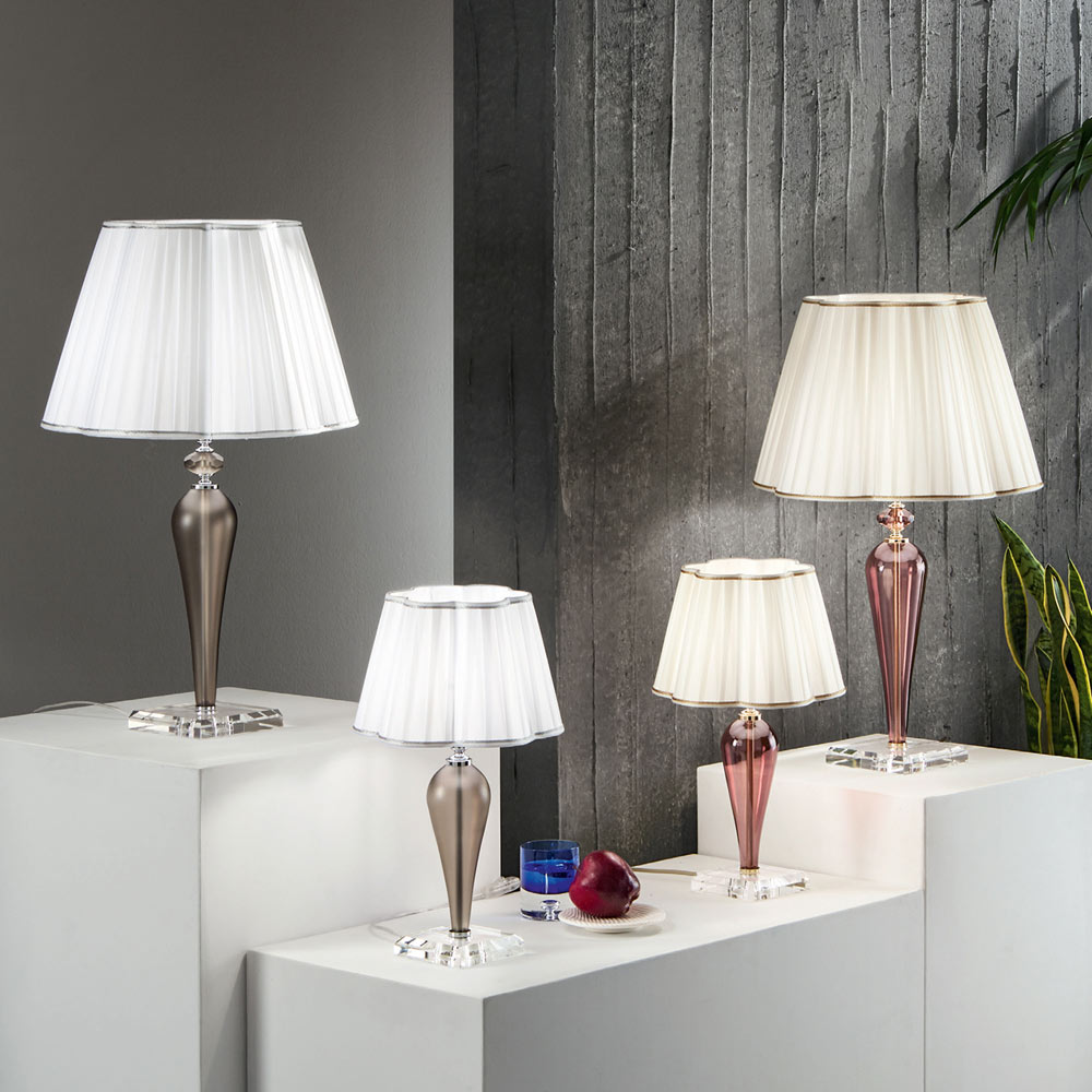 Metal table lamp, handmade glass and lampshade made in Italy.