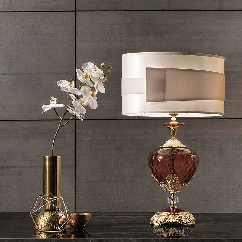 Table lamp in handcrafted glass and crystals, Italian luxury.