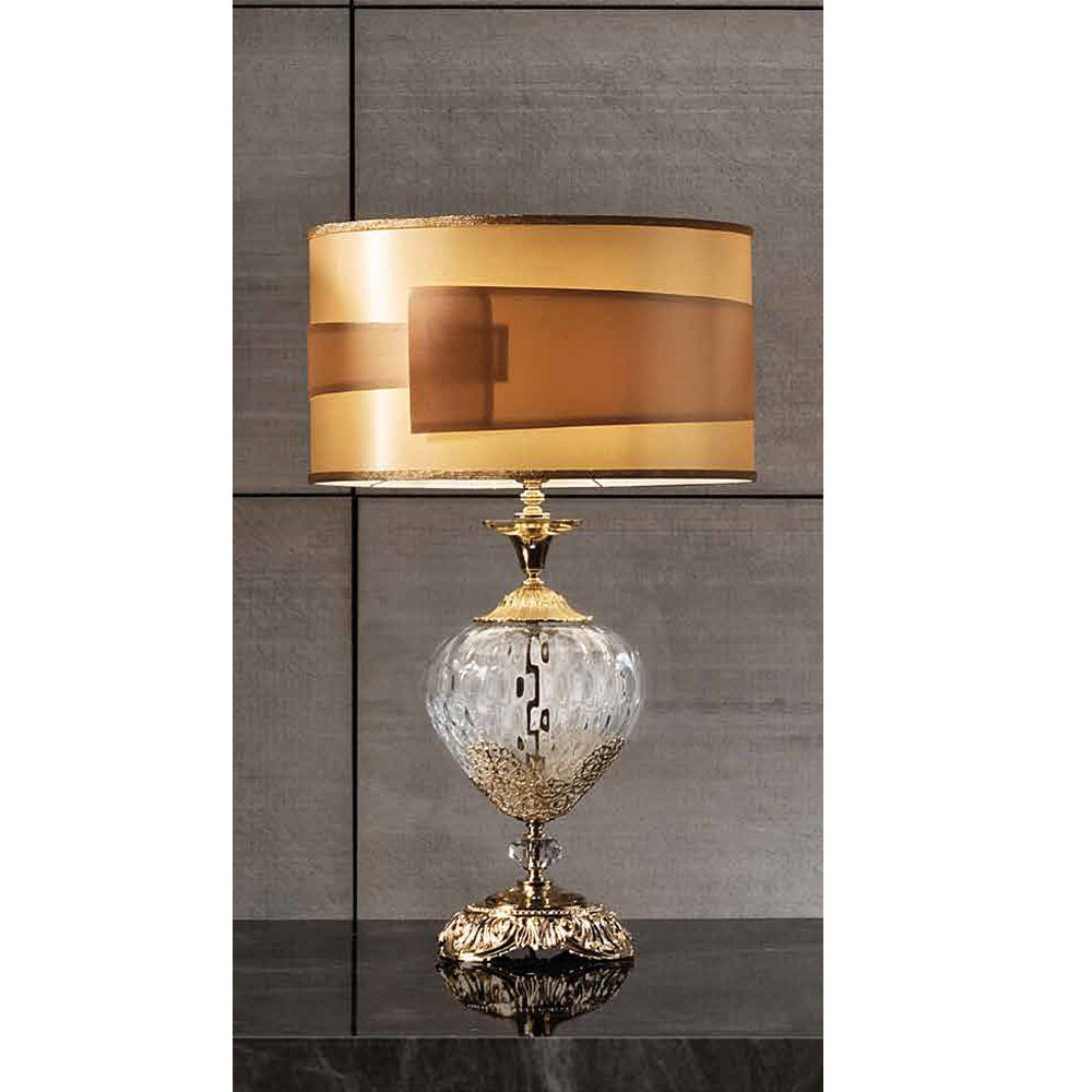 - Transparent glass body - honey glass details - shiny gold metal and champagne lampshade;