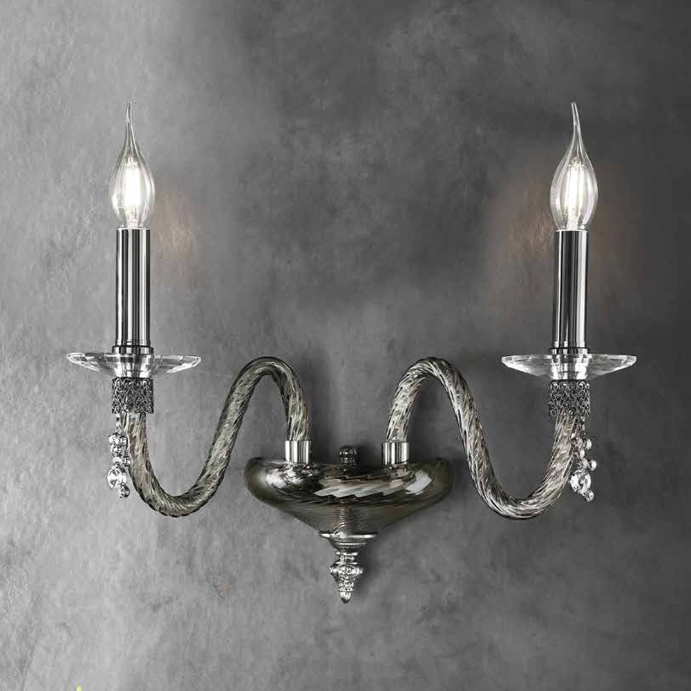 Applilque 2 lights in blown glass and jewel details, Italian luxury.