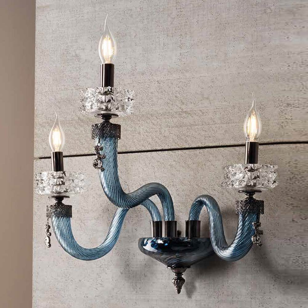3 lights wall lamp in handcrafted glass and metal, Italian luxury design.