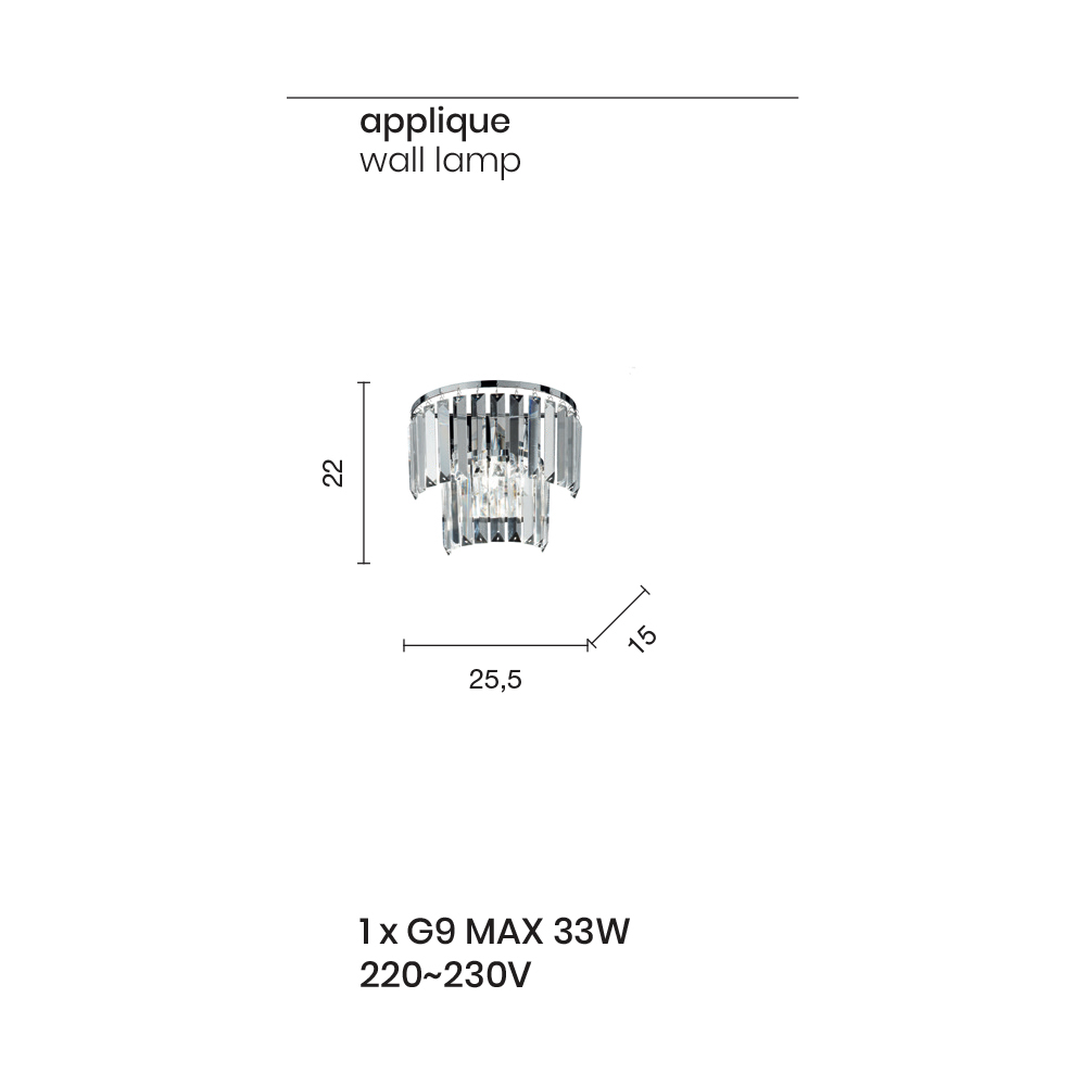 It consists of a silver metal structure and its strong point is given by the crystal pendants that decorate, illuminating every room with taste and character, in a mix of style, class and innovation.