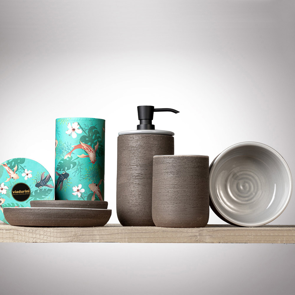 Bathroom accessories in refractory clay with gray interior Made in Italy.