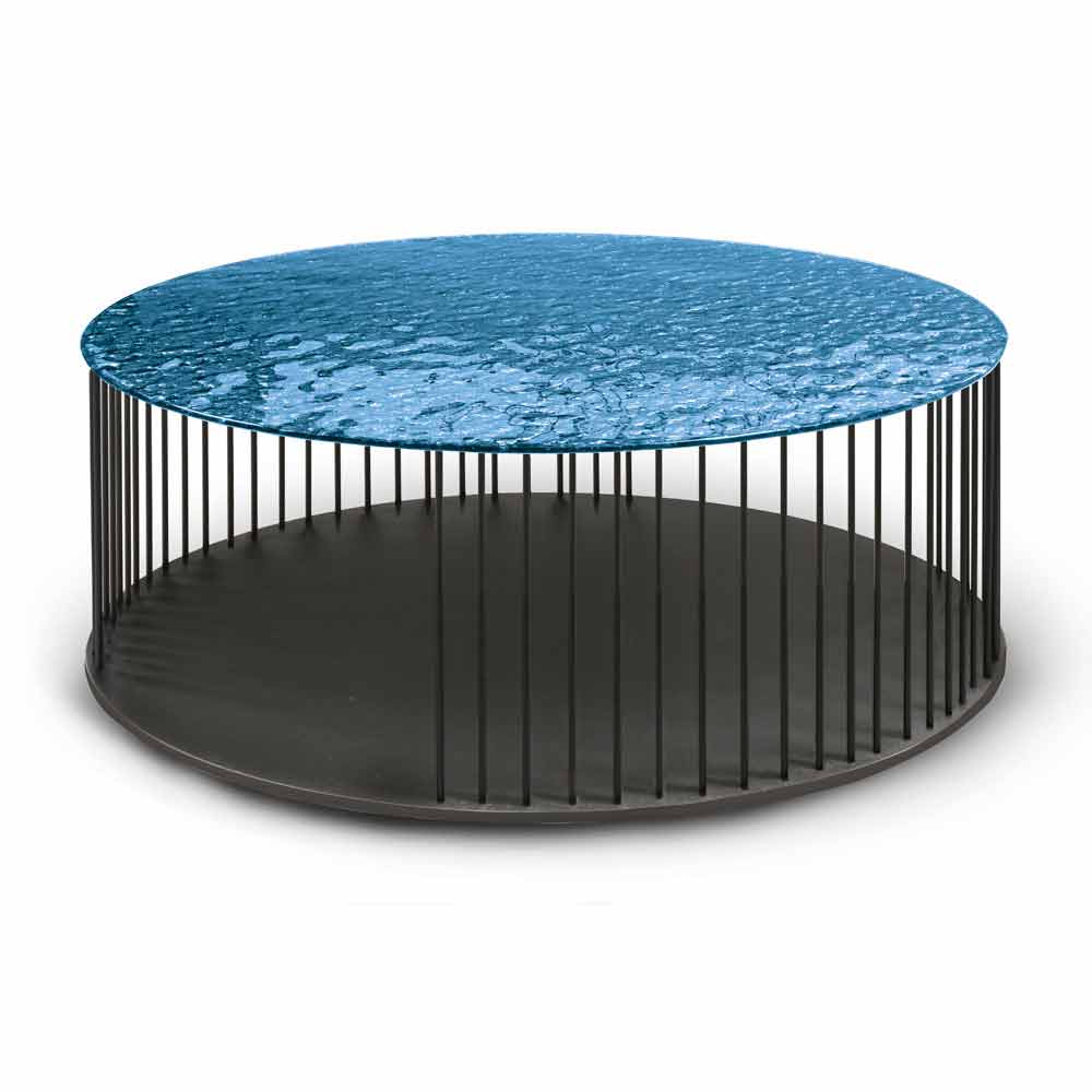 Coffee table in forged crystal and black metal Made in Italy.