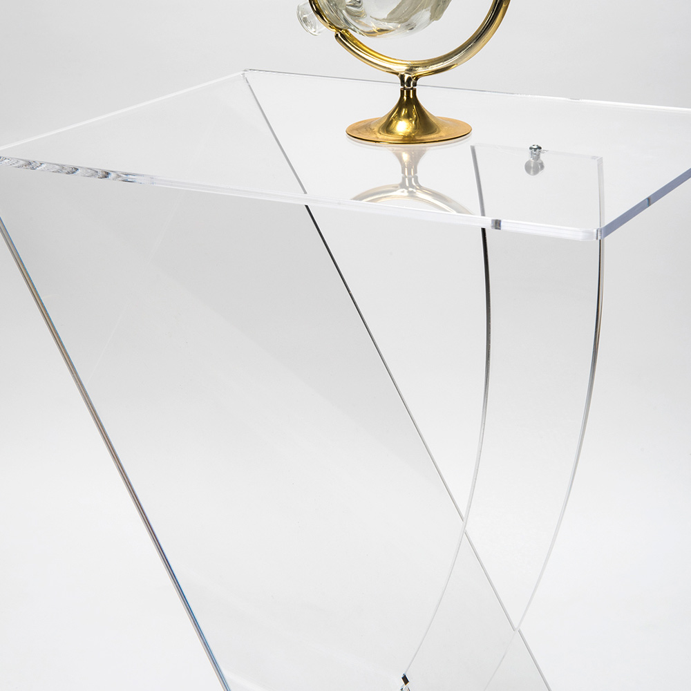 A design jewel, the sofa side table that combines functionality and style in a pure and transparent form. Every corner of your home or garden will light up with the discreet but impactful presence of this unique piece.
