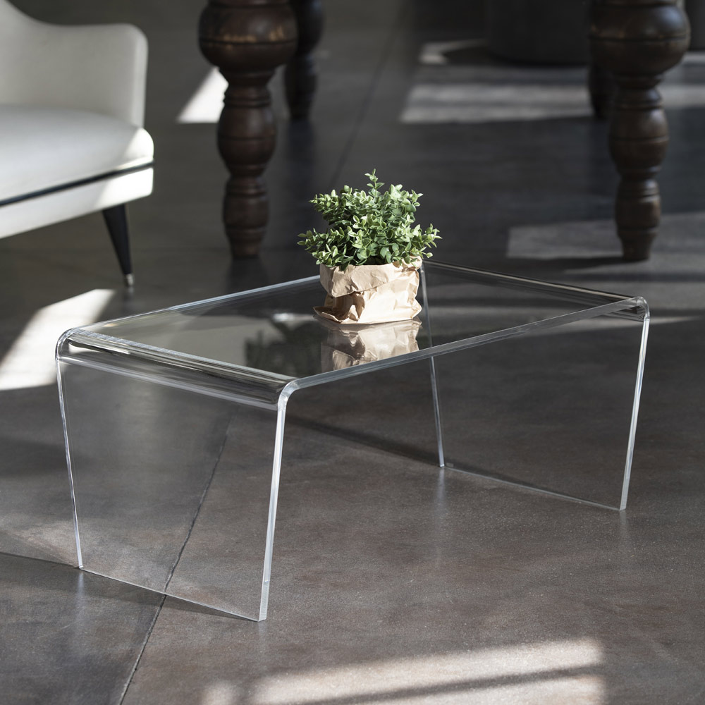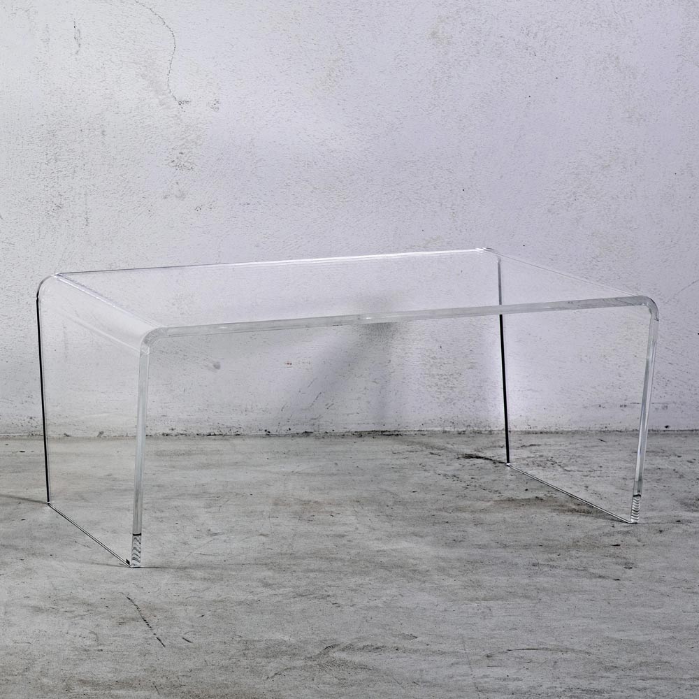 Rectangular coffee table in hand-folded transparent acrylic crystal made in Italy.