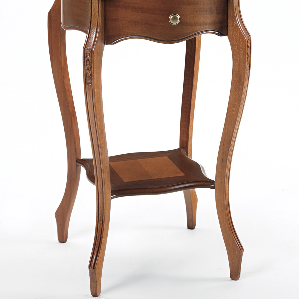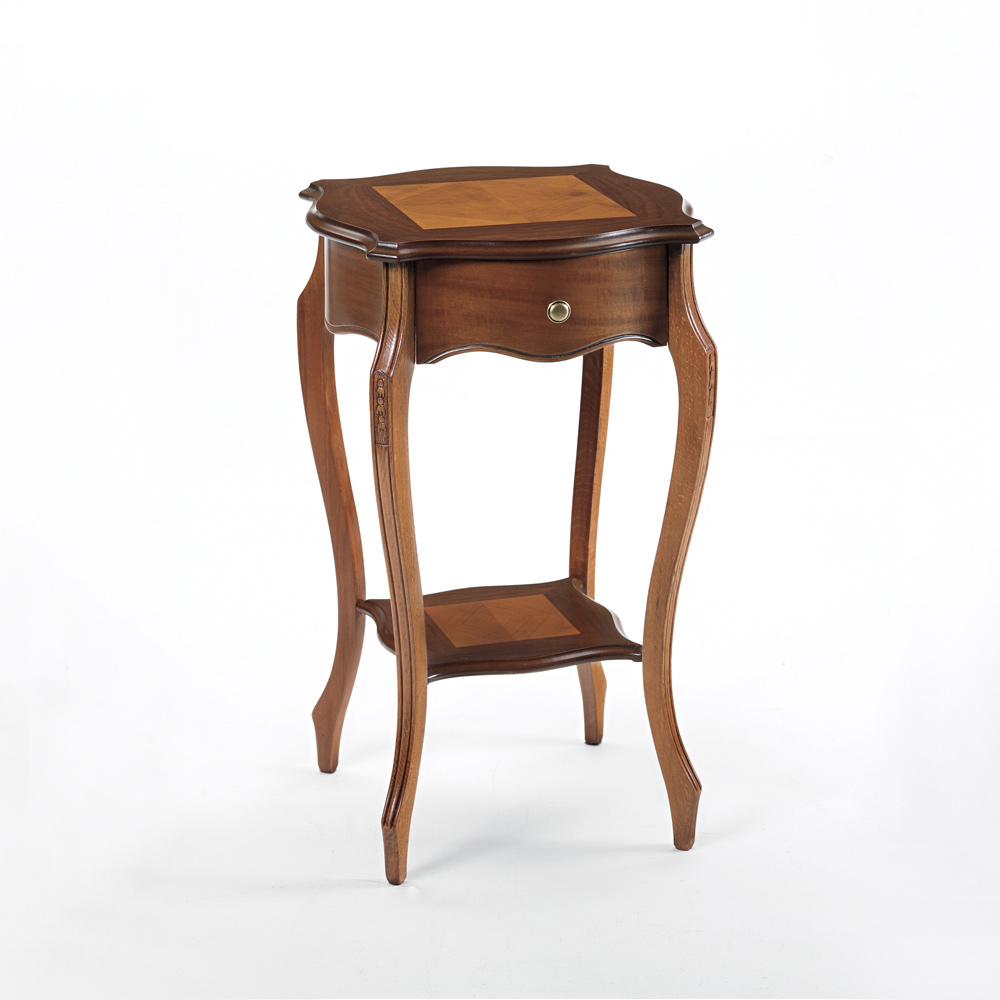Indoor coffee table with solid wood structure, alder frames, panels and other parts in cherry veneer with inlay and 1 drawer entirely Made in Italy.