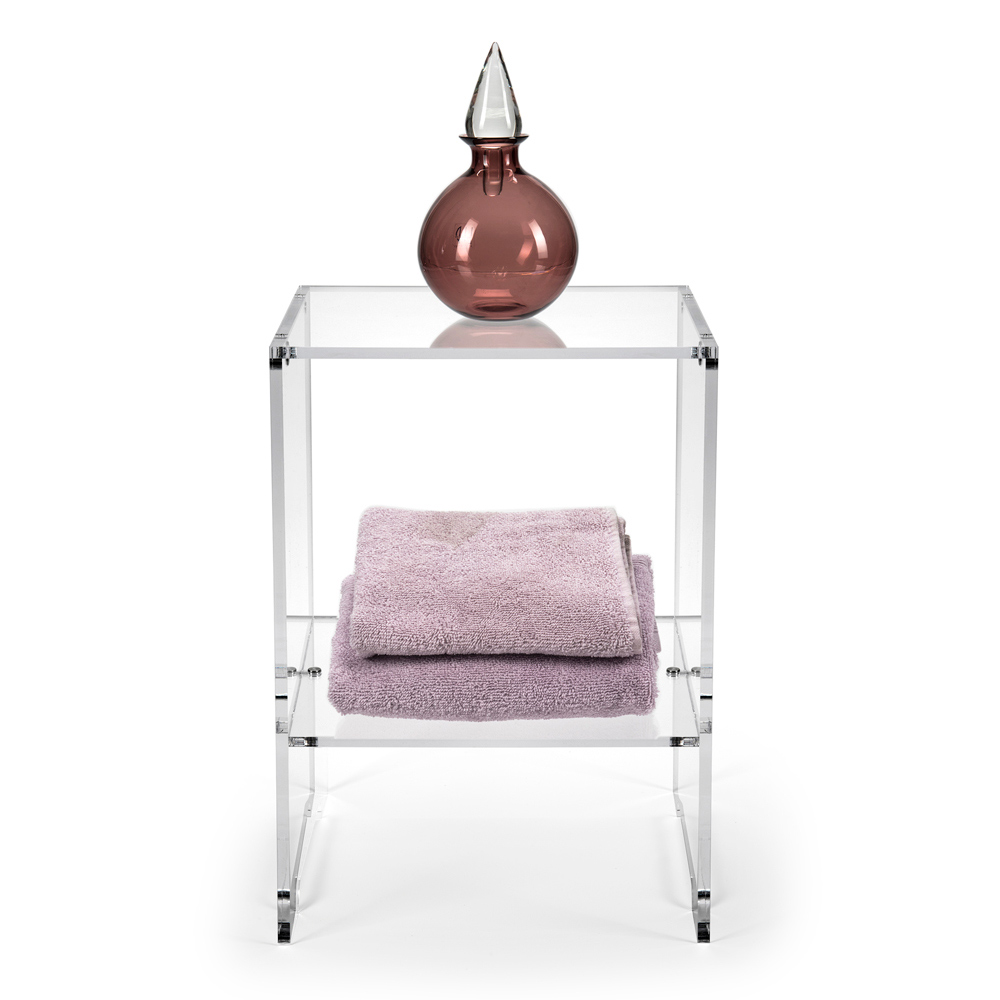 The crystalline transparency and reflective brilliance of the material create a sense of space and light, allowing this piece to blend harmoniously with its surroundings. However, its design is not limited to aesthetics: the smooth surface and clean lines make this coffee table incredibly easy to clean and maintain, ensuring its beauty remains effortlessly pristine.