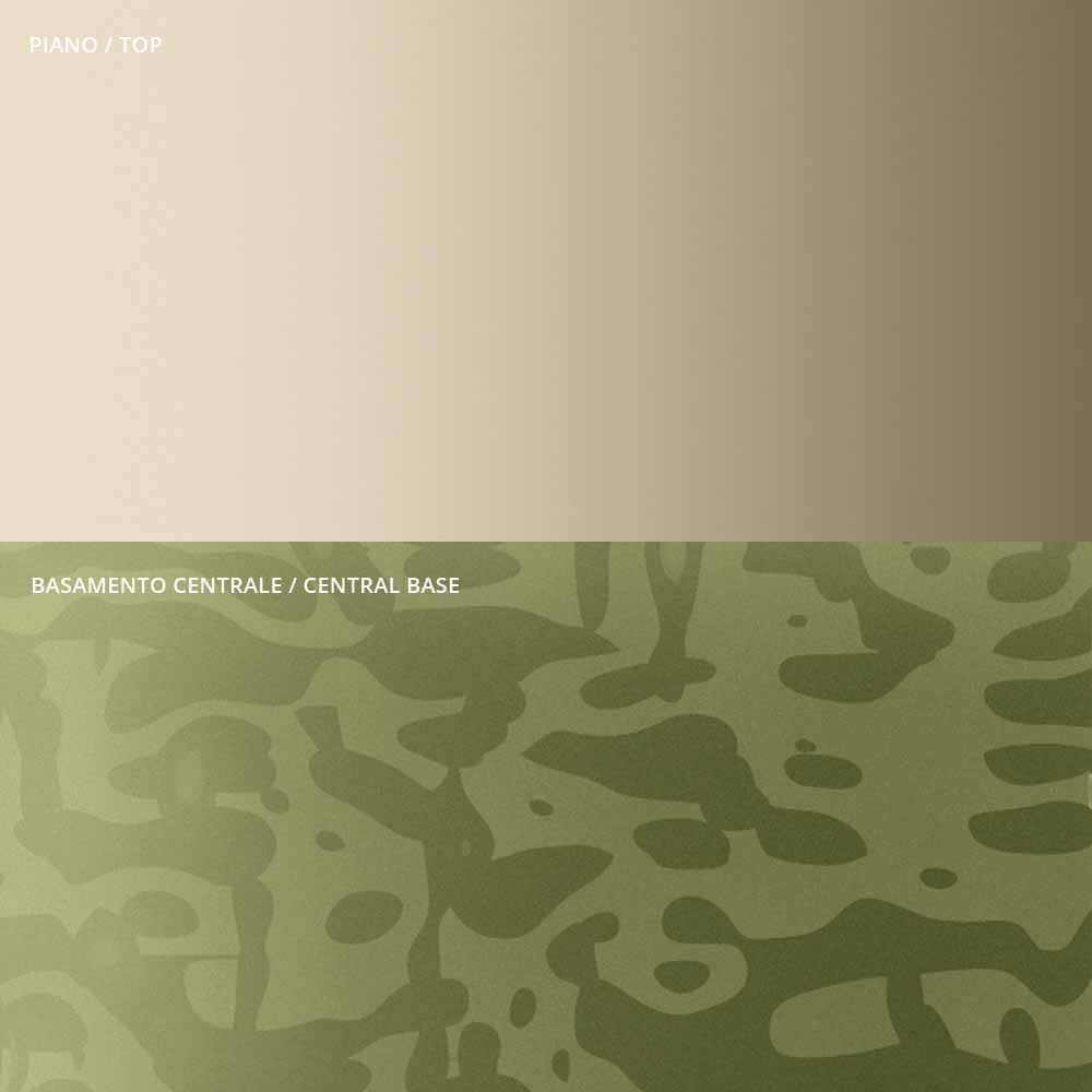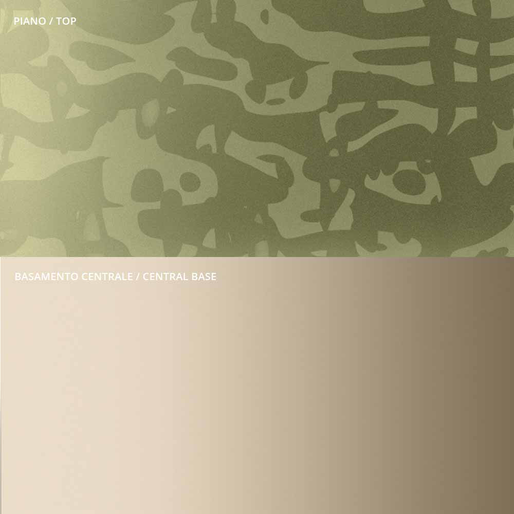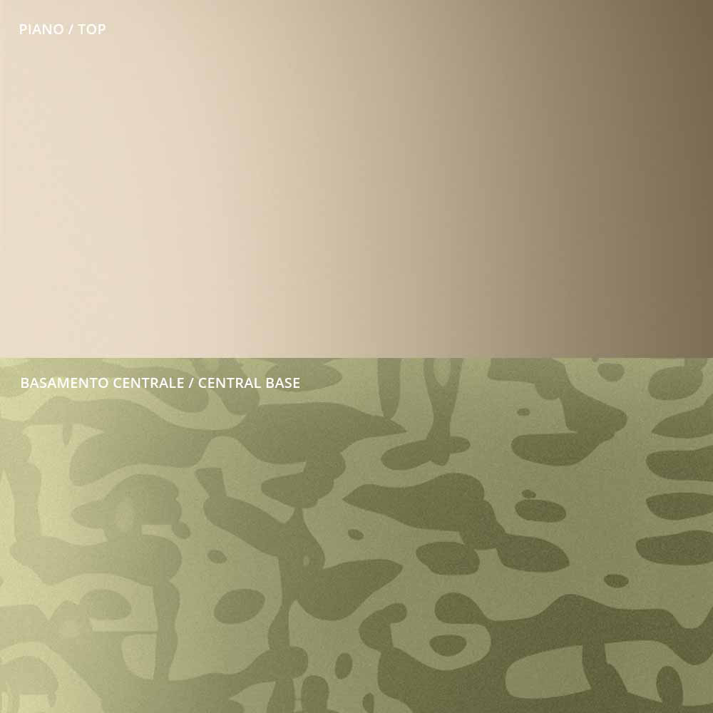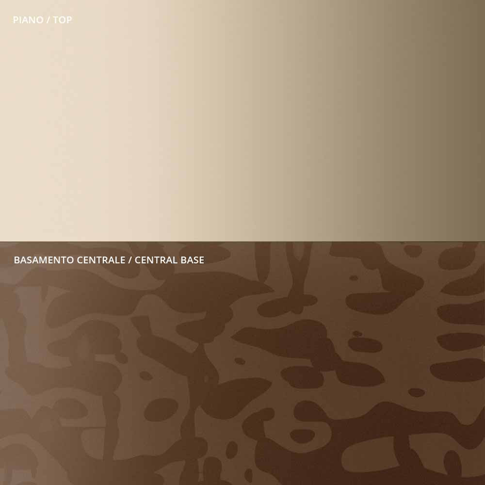 Coffee table characterized by the originality and elegance of the shapes of the top and the base which enhance the detail of the central metal stem, carefully turned in thickness and finished on the surface. The coffee table, alone or in a group, adapts to furnish any room in the home and contract with a touch of uniqueness .