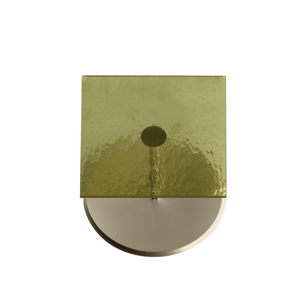 • champagne metal top and olive green fused glass base