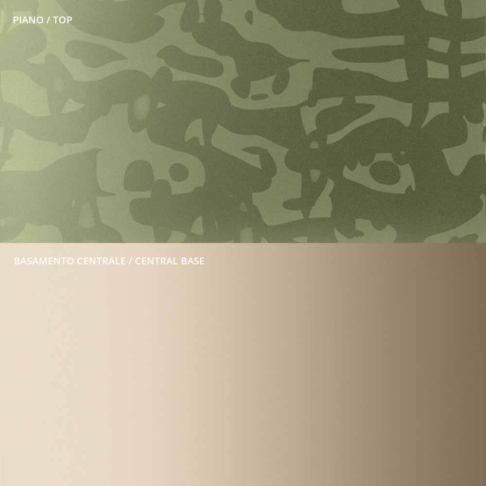 • olive green fused glass top and champagne metal base