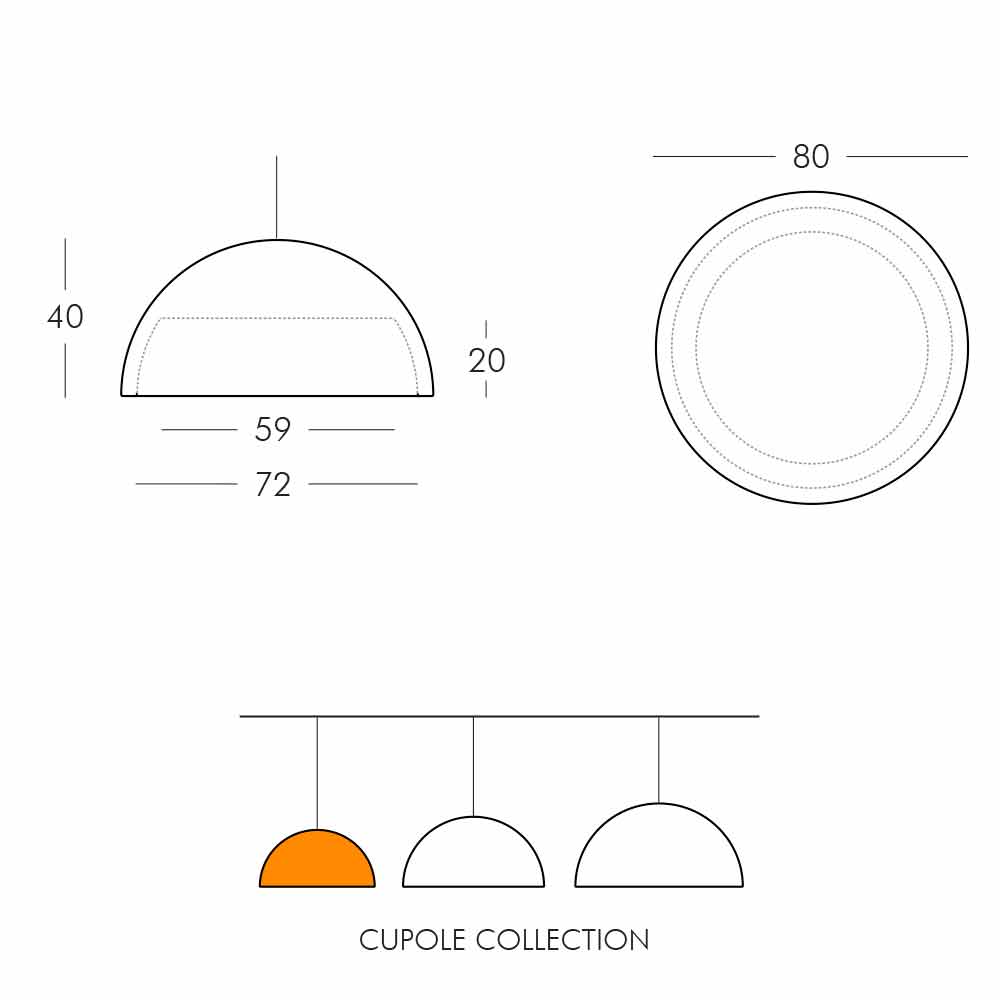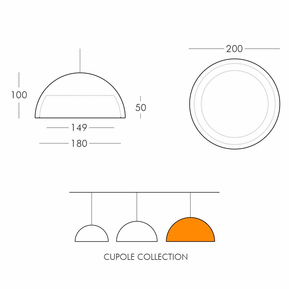 Cupole is a half-sphere suspension lamp perfect for any indoor environment. Ideal piece of furniture to give originality and character to even the simplest and most anonymous settings.