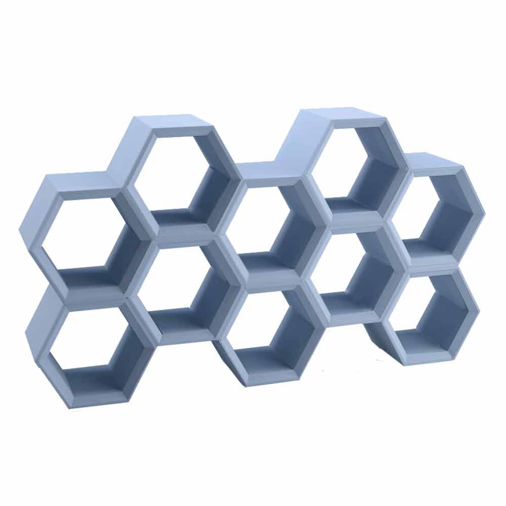 Hexa is a polyethylene bookcase whose shape is inspired by nature. The connected cells of which it is composed form a versatile piece of furniture suitable for both domestic and non-domestic use. The geometric shape is elegant and with its six sides it allows for at least two support sides for each space.