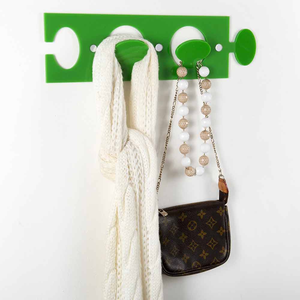 3 Wall hanger of modern Italian puzzle design in laser cut plexiglass, available in various colors.