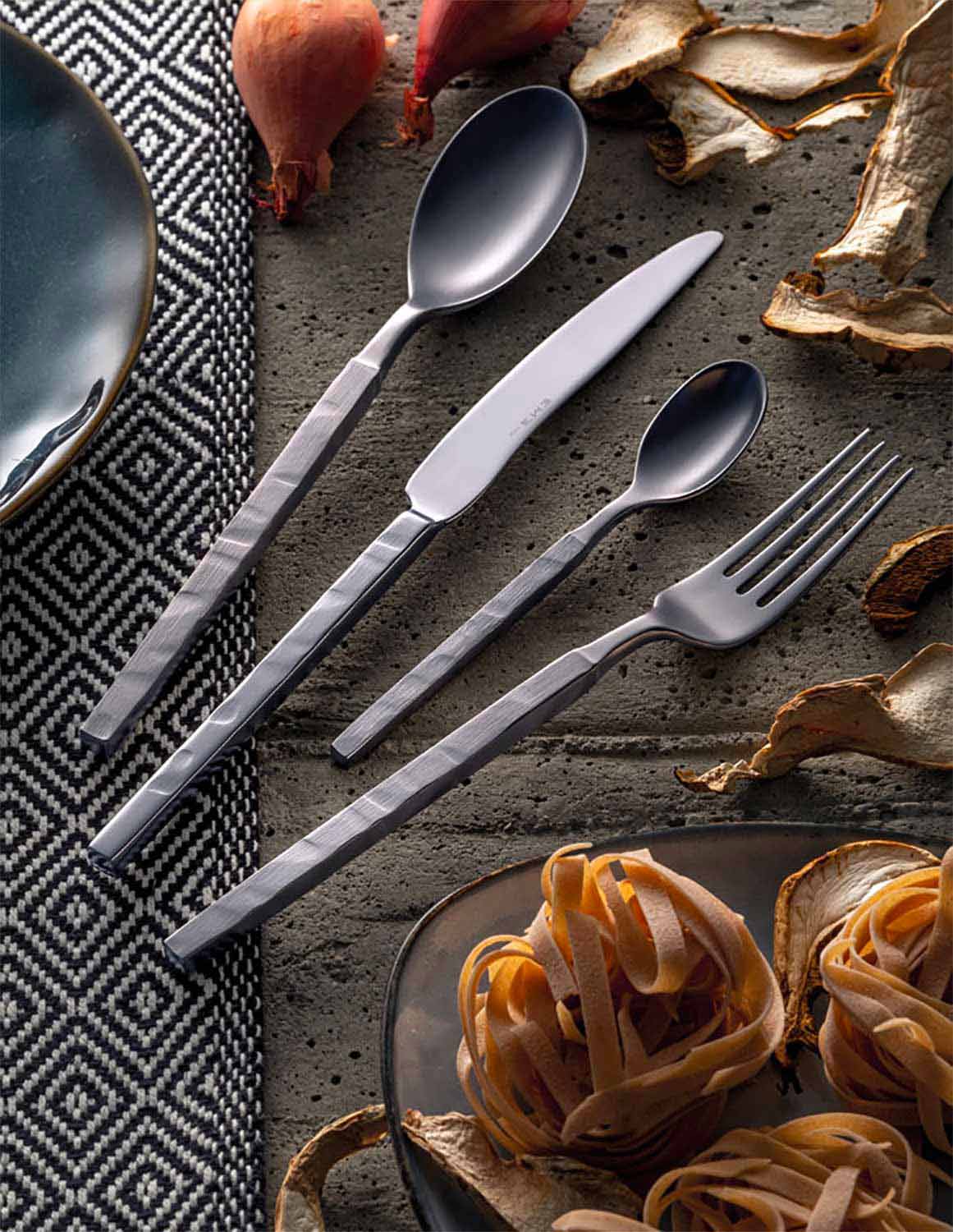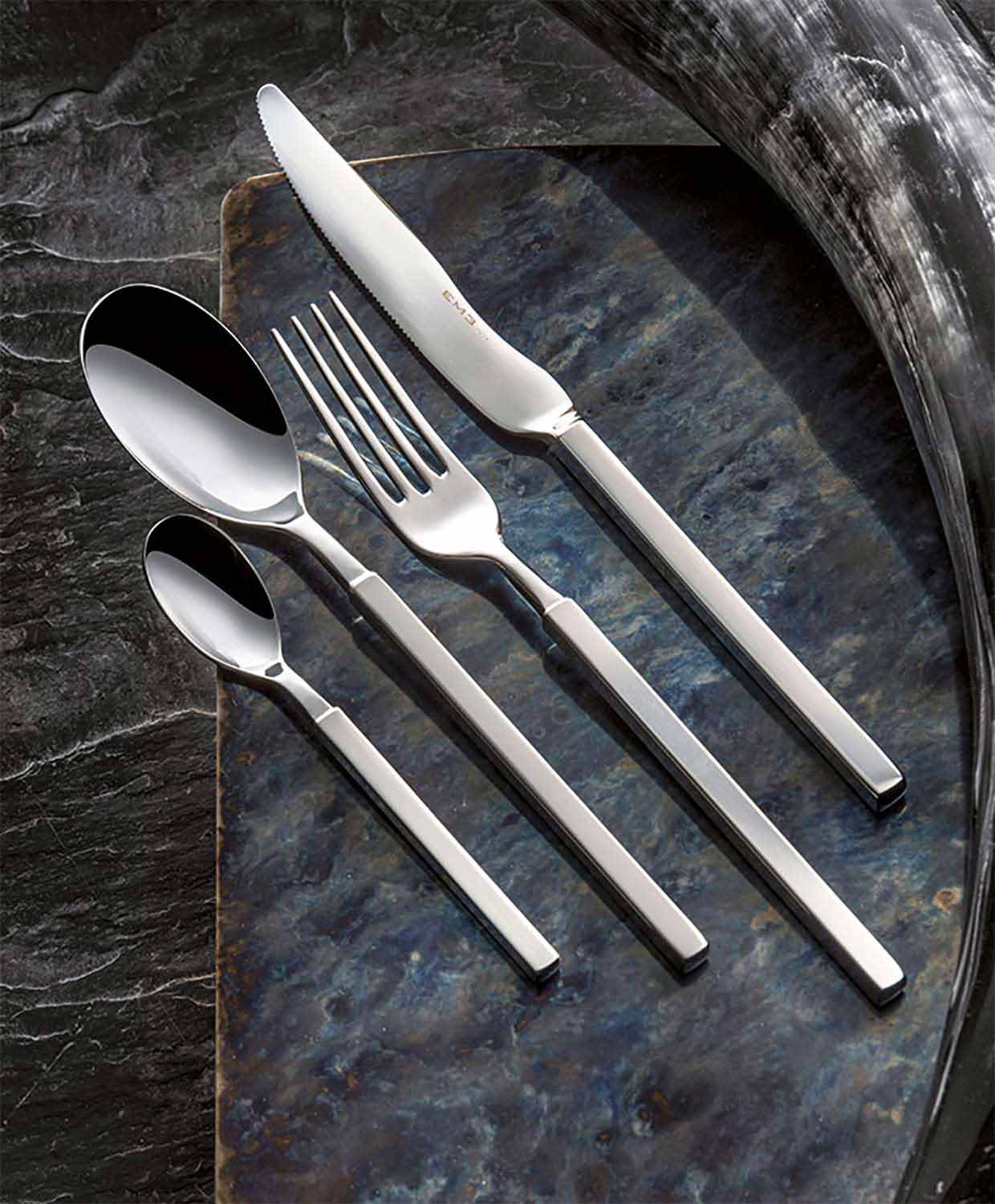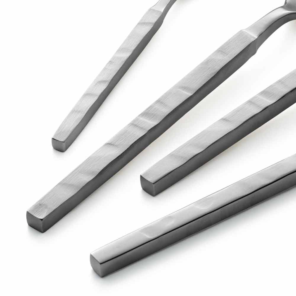 Made of forged steel, the square design and functional attention distinguish this cutlery collection inspired by modern urban spaces. The