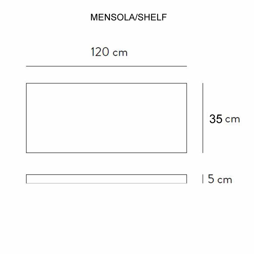 • suspended shelf: W 120 x D 35 x H 5 cm