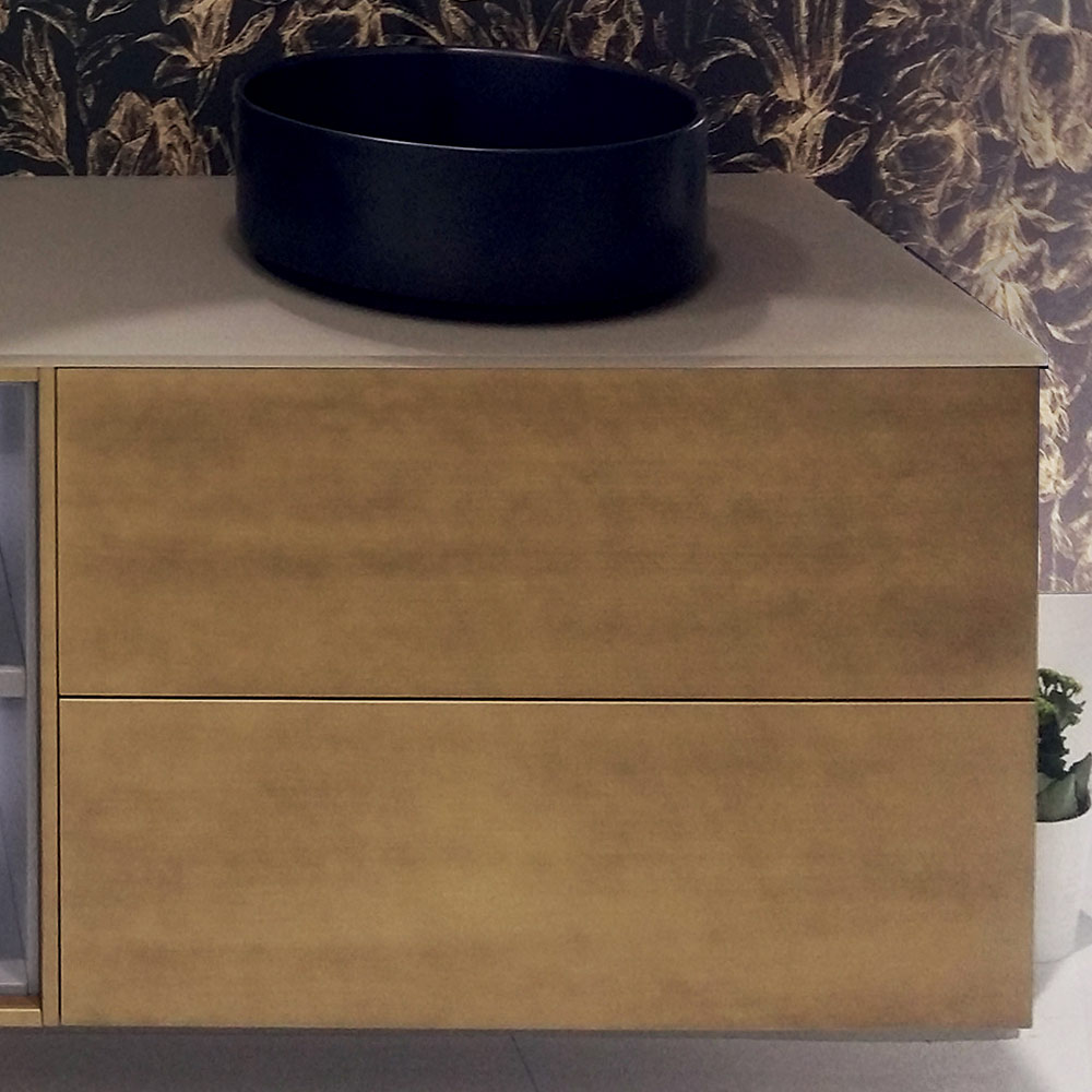 - 1 washbasin base consisting of two bases of cm. 72 each, joined by a glass top, with an open compartment in the center 36 cm long