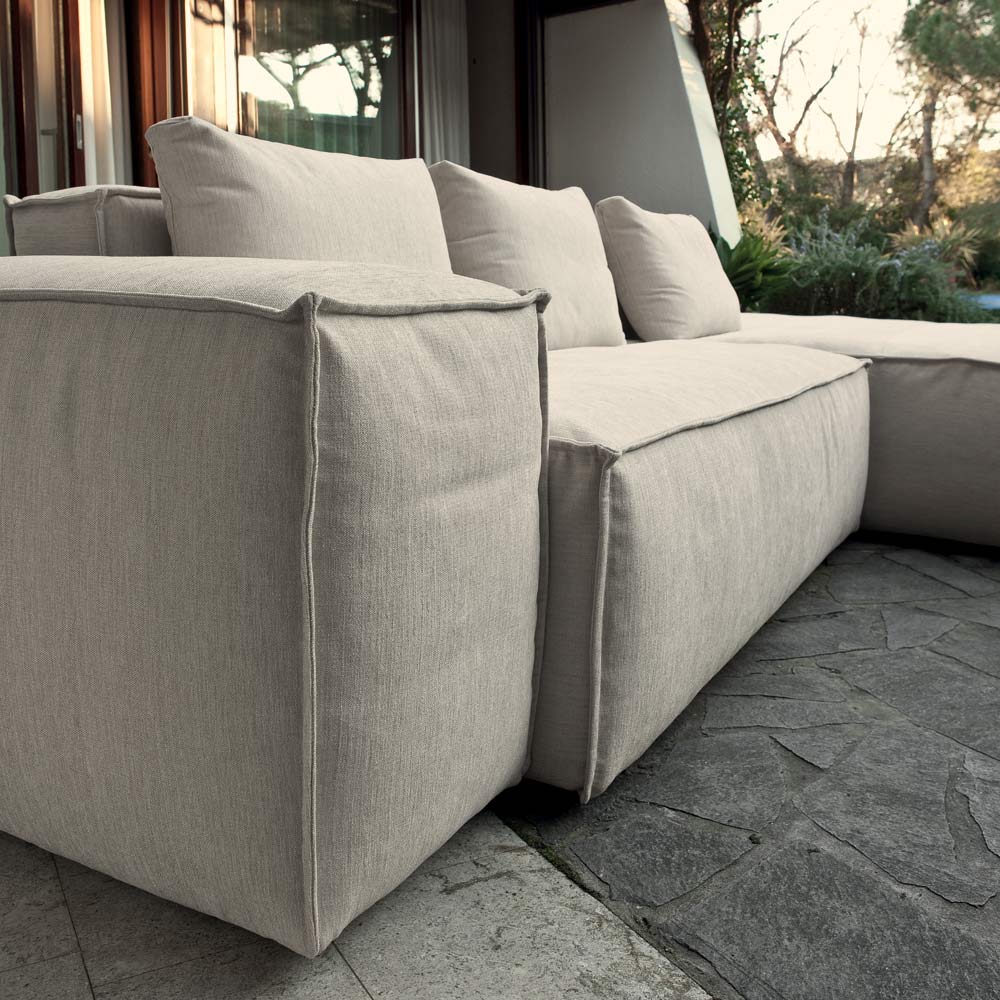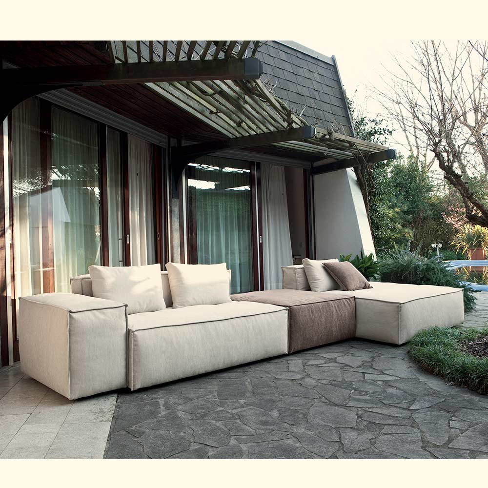 black ABS. This modular sofa combines relaxation and style, offering an impeccable line with square but relaxed shapes. It is designed to evoke pleasant atmospheres and guarantee maximum comfort. One of its distinctive features is the wide range of compositional solutions to adapt to various environments​