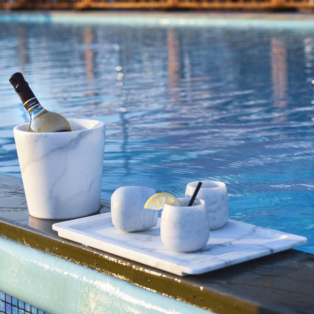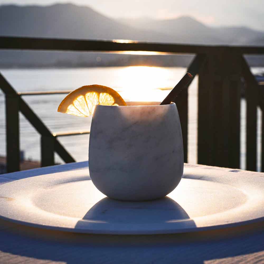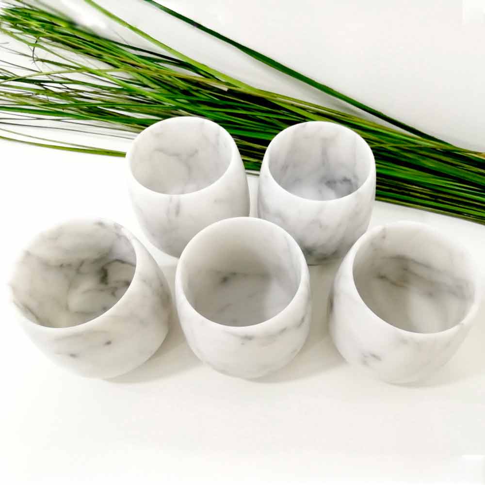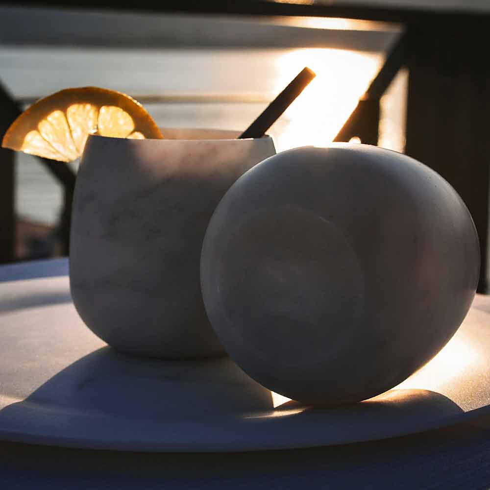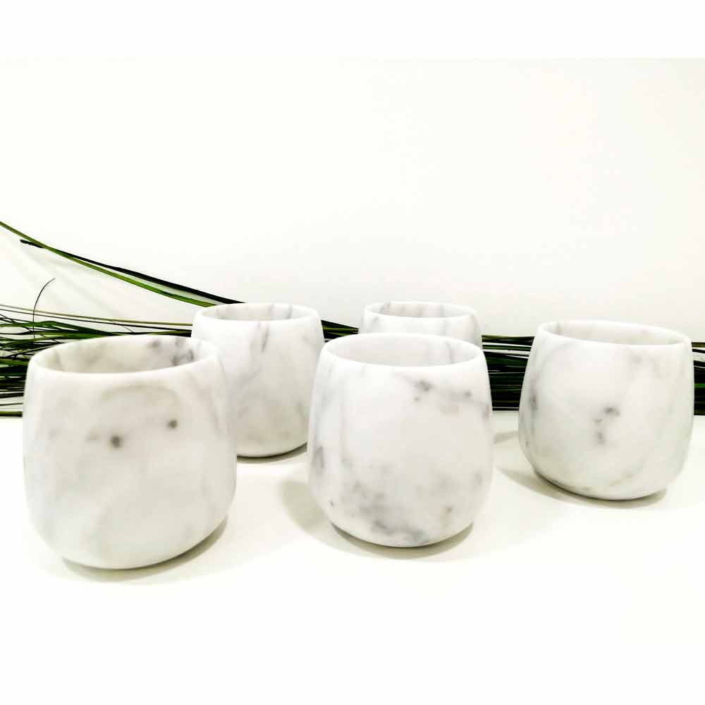 NB : due to the characteristic porosity of marble, it is not recommended to pour colored drinks inside them in order to best preserve the natural white shade of the marble.