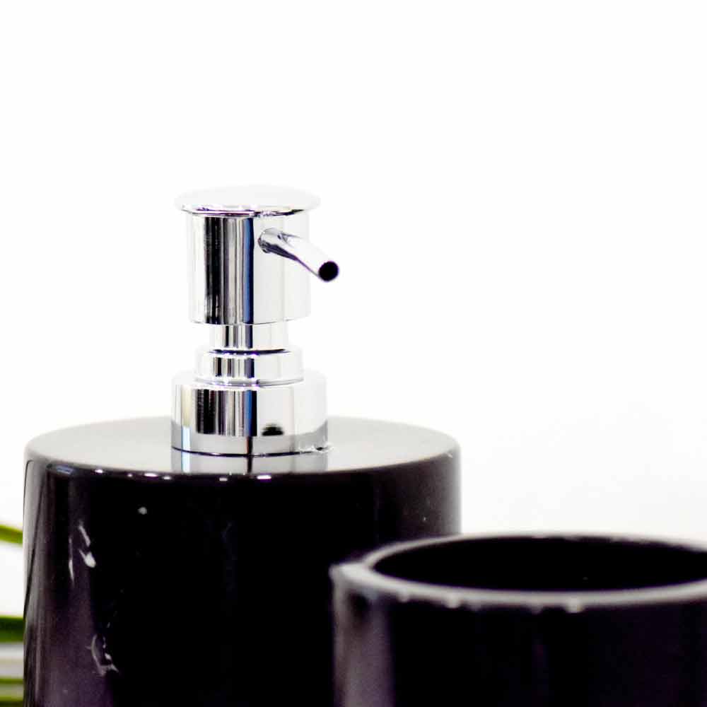 Composition of 3 bathroom accessories : a toothbrush holder, a liquid soap dispenser and a soap dish. Handmade in Italy , these 3 items are available in white Statuario marble or black Marquinia marble , a very compact material with an intense black background with white or light gray veins. Both variants contribute to the creation of a bathroom area with a sophisticated and modern atmosphere and the combination of materials, finishes and techniques used together with the work of the master craftsmen allow to obtain a high quality final product with attention to detail and perfect for decorating environments with contemporary taste.