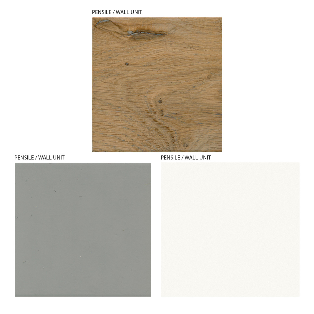 - hung wall unit with soap bar profiles, body and fronts in MDF with slate finish