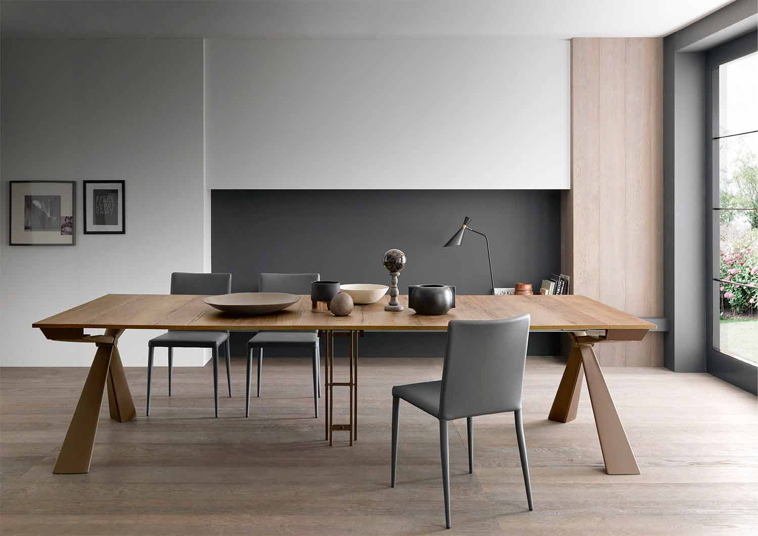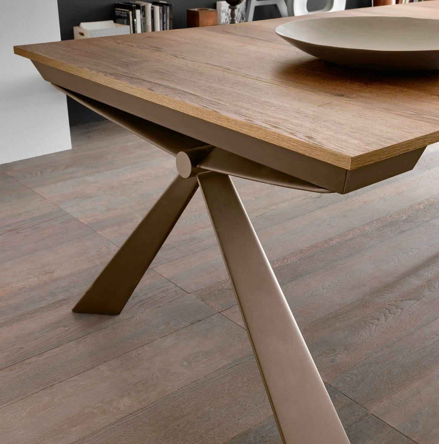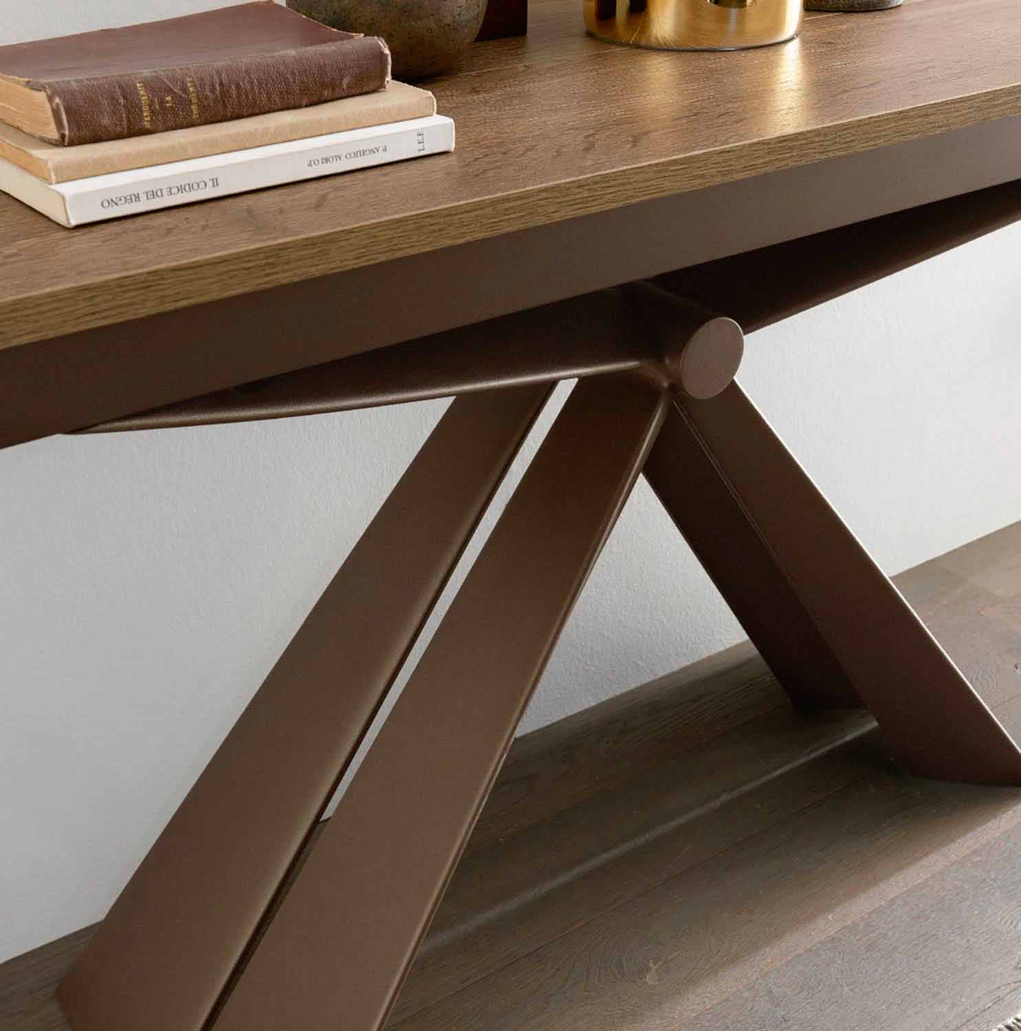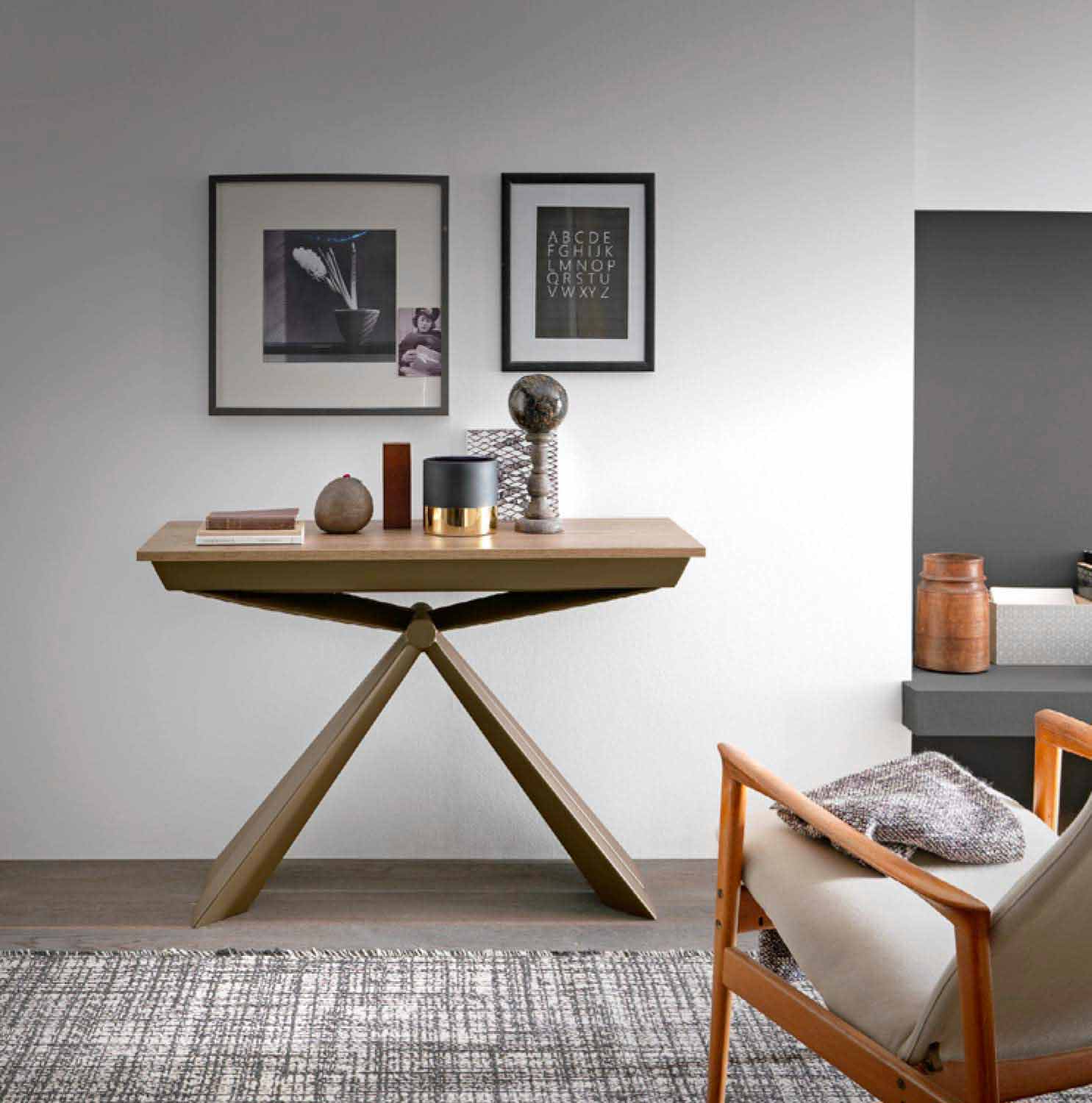 extendable console is outlined by a sculptural design thanks to the shape of the metal structure which converges its lines in a central node.
