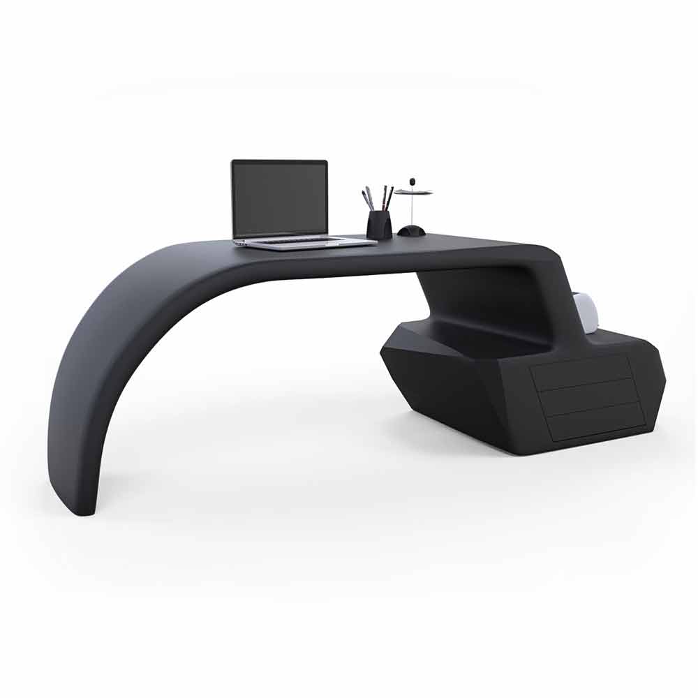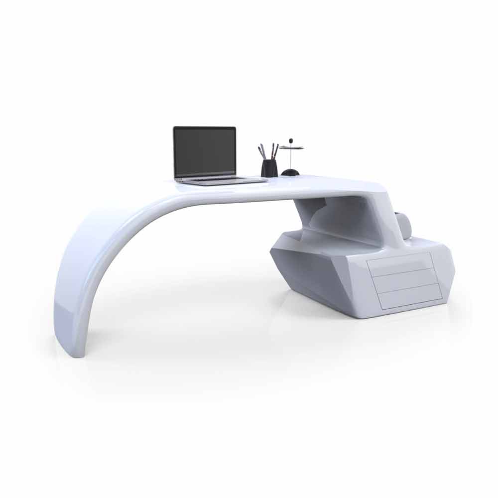 The Gush desk was born from the encounter between apparently distant formal languages. Just as a gush of spring water flows from the rock, so our desk brings together divergent stylistic codes: solid VS liquid to fully enhance the characteristics of Solid Surface, the material of which it is made. Desk available in two color variants: White (RAL9003) or Black (RAL9005).