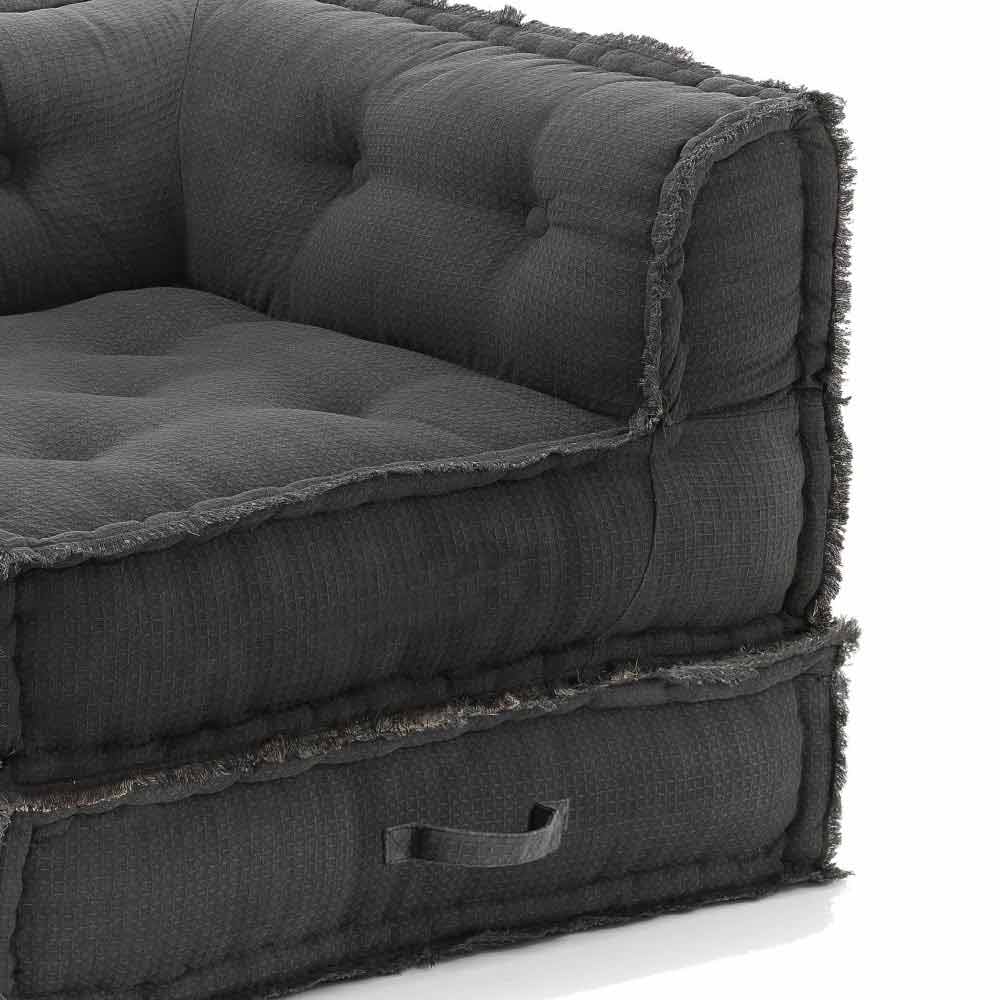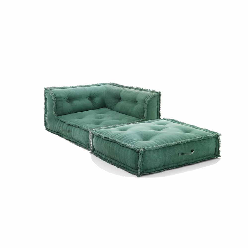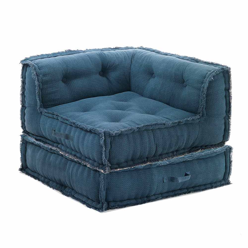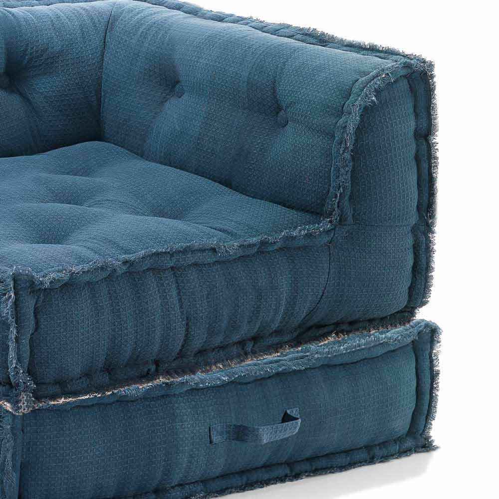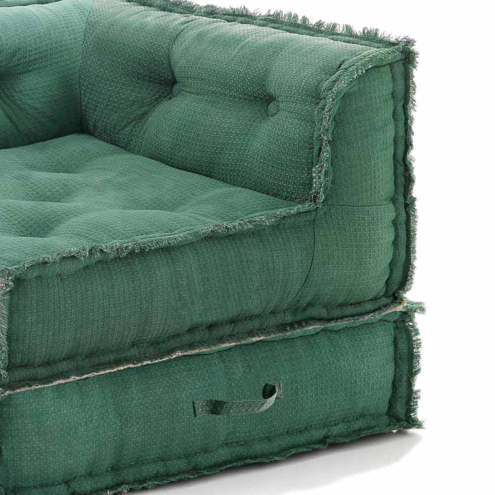 Ethnic design corner lounge chaise longue armchair, produced in gray, green or blue cotton.